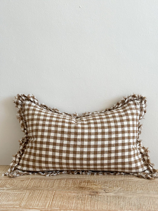 Millie Brown Gingham Feather Cushion (50x30cm)