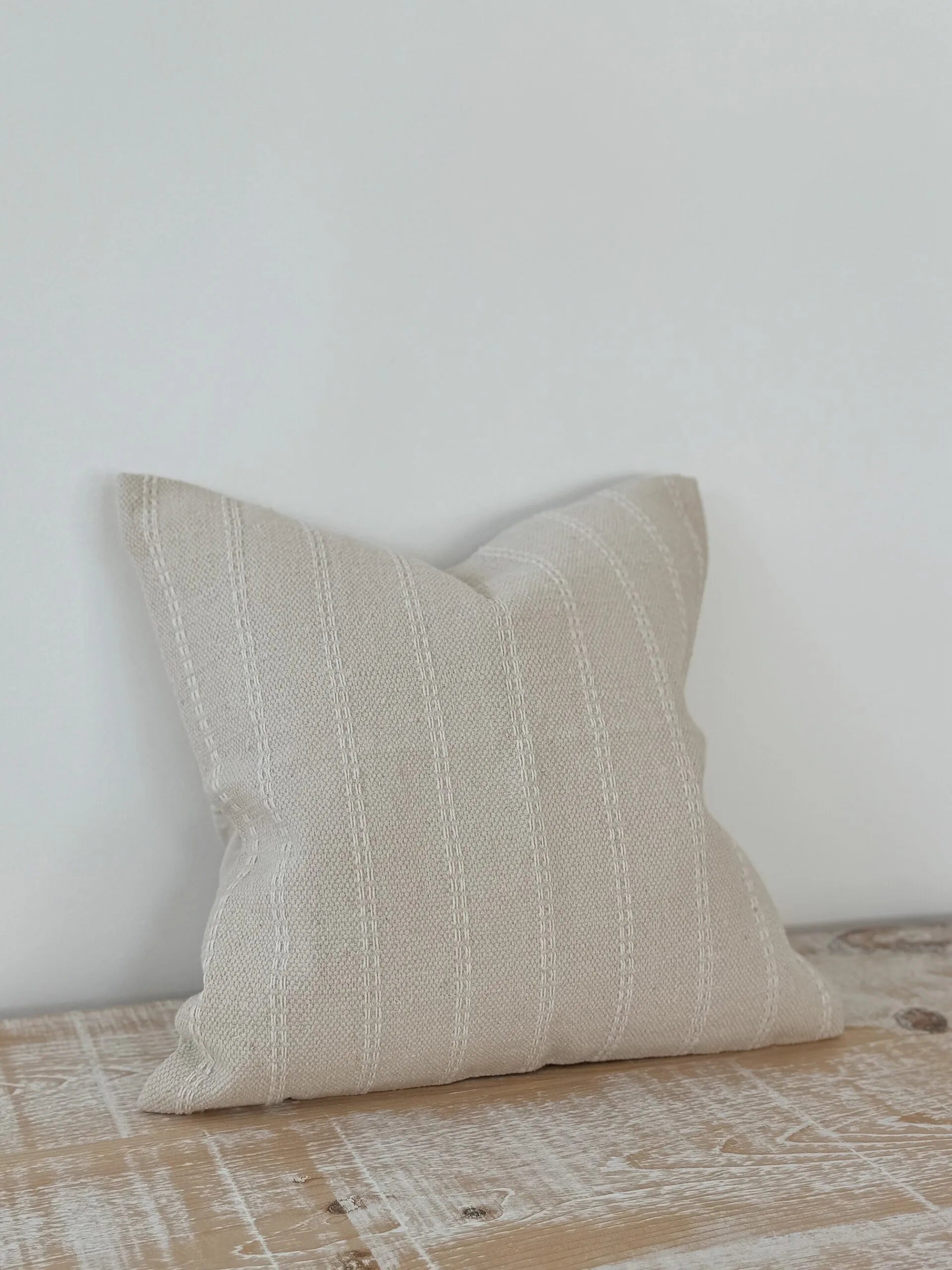 The Aspen Cream Cushion is cream with a stitched stripe on the front of the cushion and has an oatmeal back.