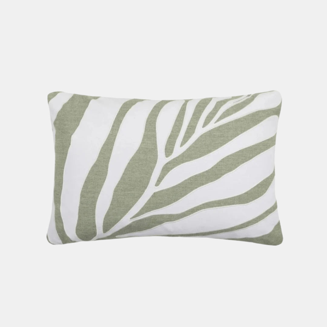 The Bamboo cushion is a green cotton cushion with a cream embroidered print.