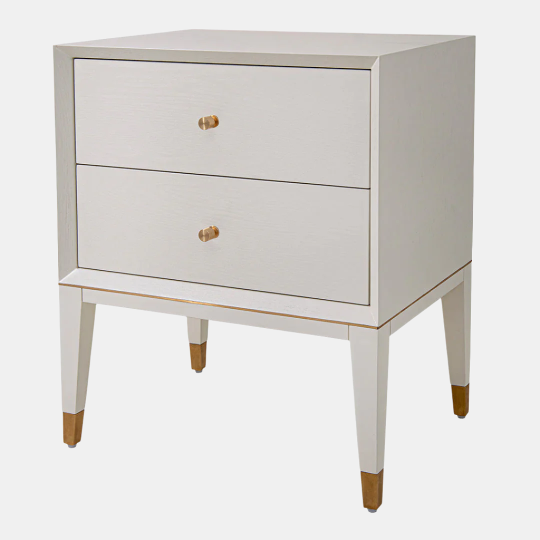 The Barton Bedside Table is luxurious and minimal in design making it ideal for modern, traditional or contemporary interiors. The nightstand is finished in white with brass trim and features three drawers, giving you much needed storage space for bedroom essentials. This piece has been expertly crafted to ensure quality that will last for years to come.