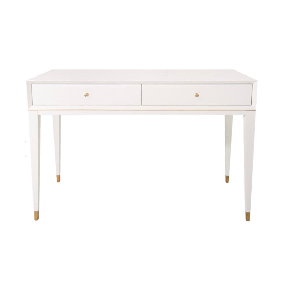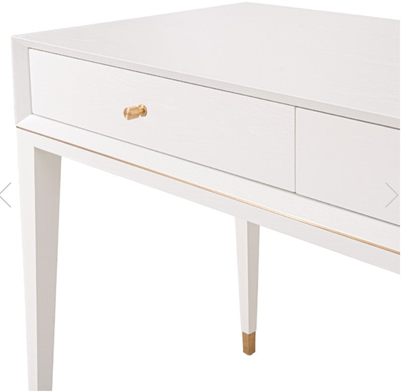 The Barton Dressing Table is luxurious and minimal in design making it ideal for modern, traditional or contemporary interiors. The dressing table is finished in white with brass trim and features two drawers, giving you much needed storage space.