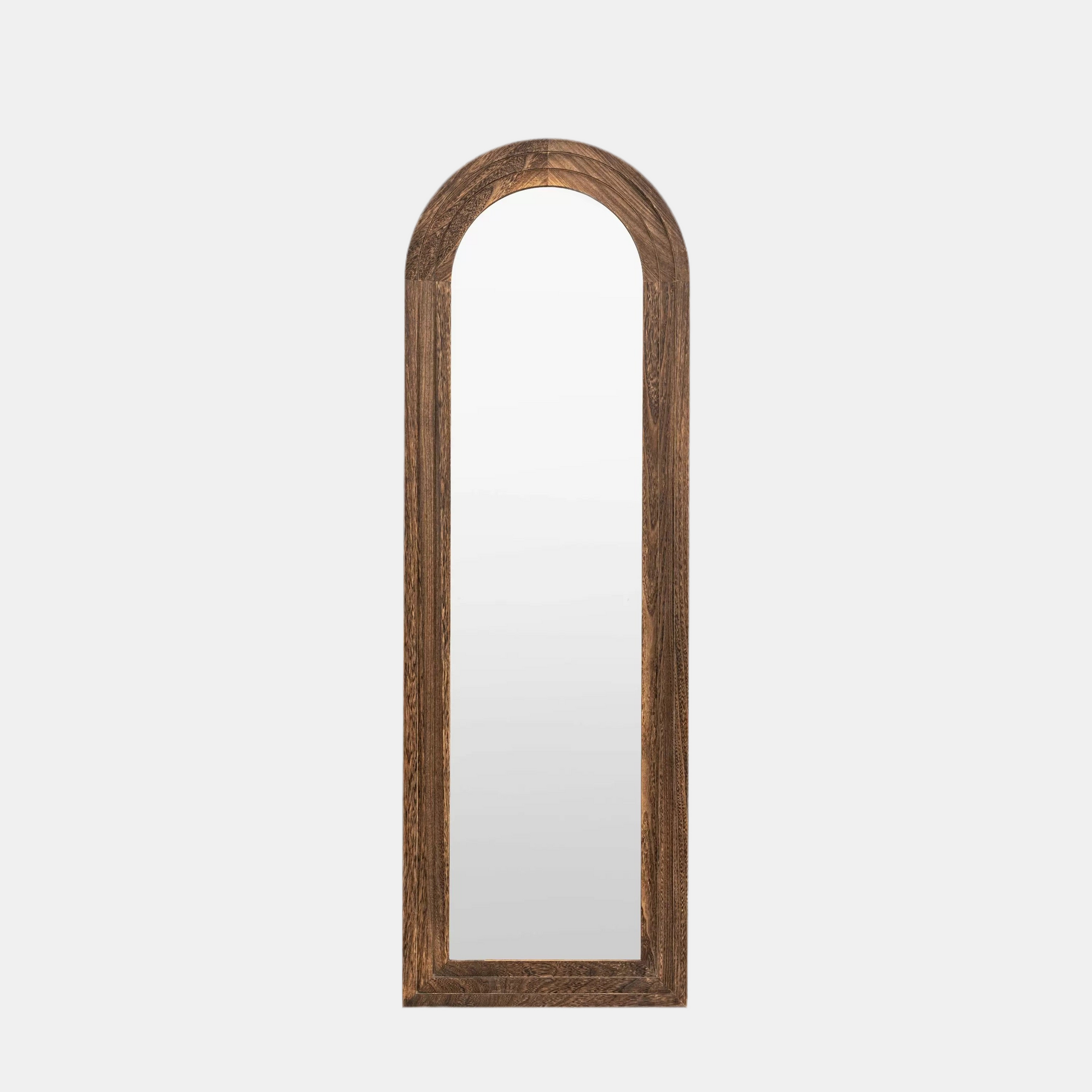 This mirror boasts a natural dark washed wood frame with ridged detailing which not only reflects light but brings an organic touch to the home. The arch silhouette creates a focal point that effortlessly complements a variety of interior styles.
