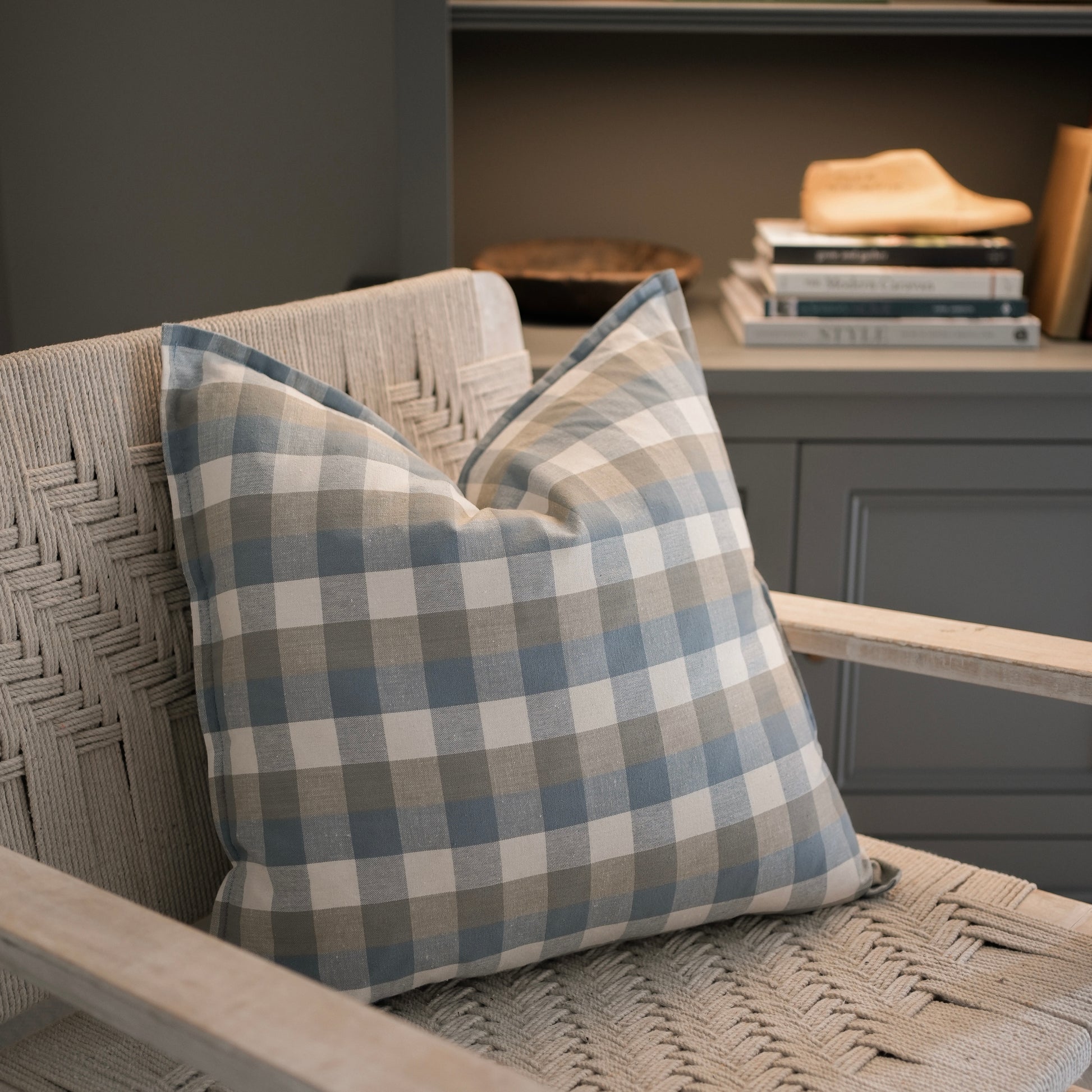 Classic woven double check design in a cheerful blue colour. This cushion comes complete with a luxury feather insert.