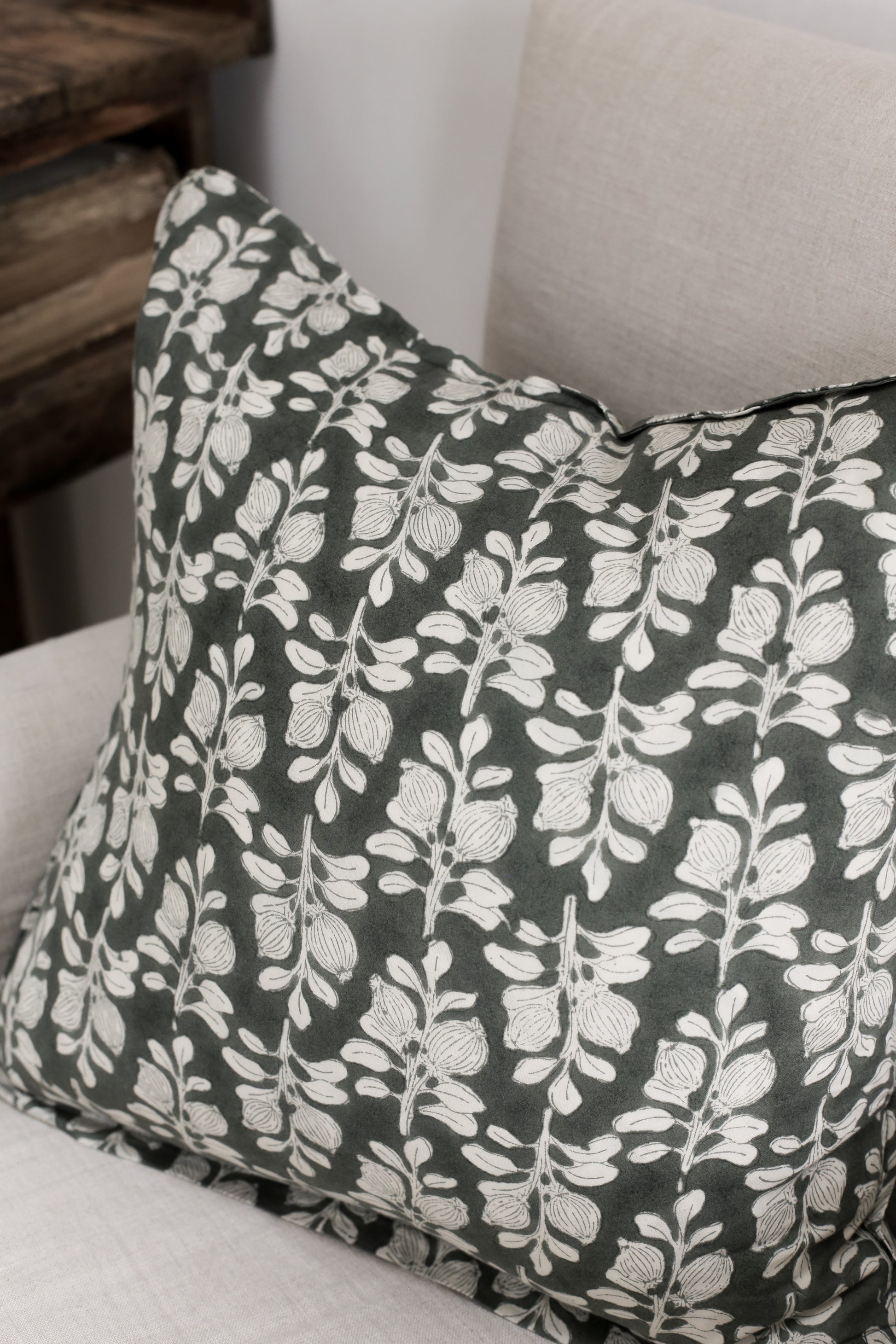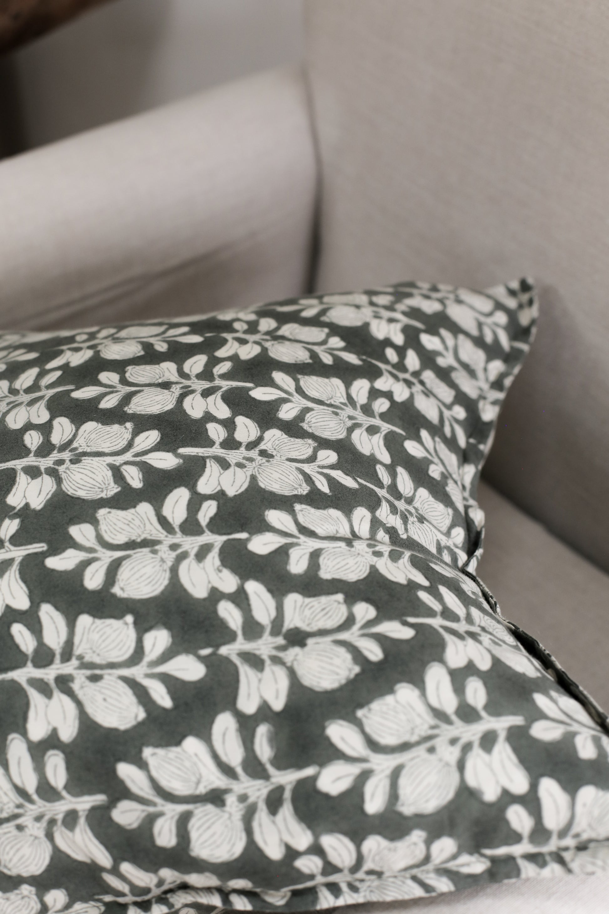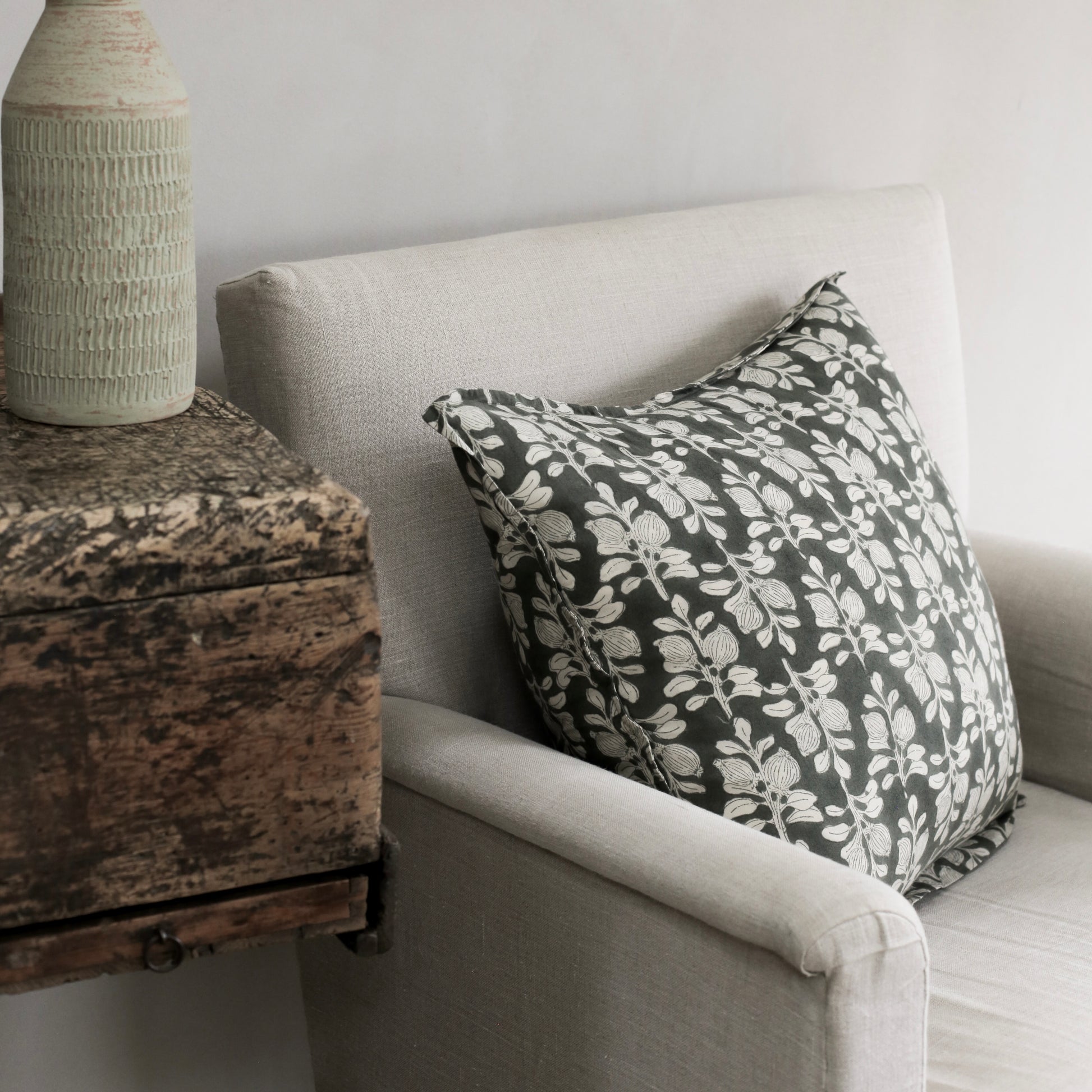 This beautiful botanical cushion showcases the traditional Indian technique of block printing by skilled artisans carving intricate designs onto wooden blocks, which are then dipped in natural dyes and stamped onto the fabric. It comes complete with a luxury feather insert.