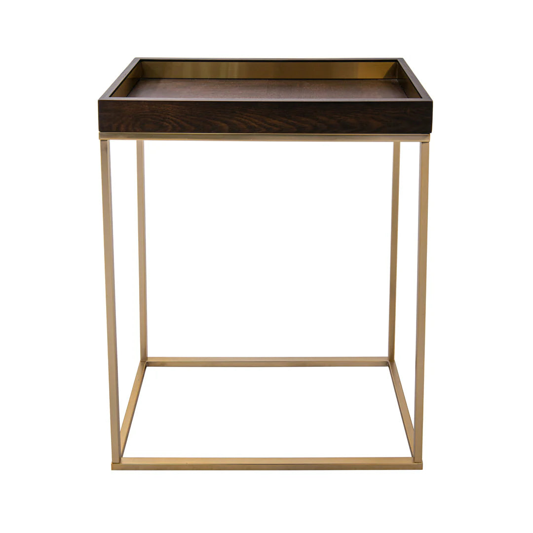 The Brook Console Table is a useful size for many interior settings. The geometric stand is a beautiful satin champagne topped with a rich chocolate top, a timeless style that will work great in any interior setting. Perfect for placing in a living room behind a sofa, in a snug or in a hallway.