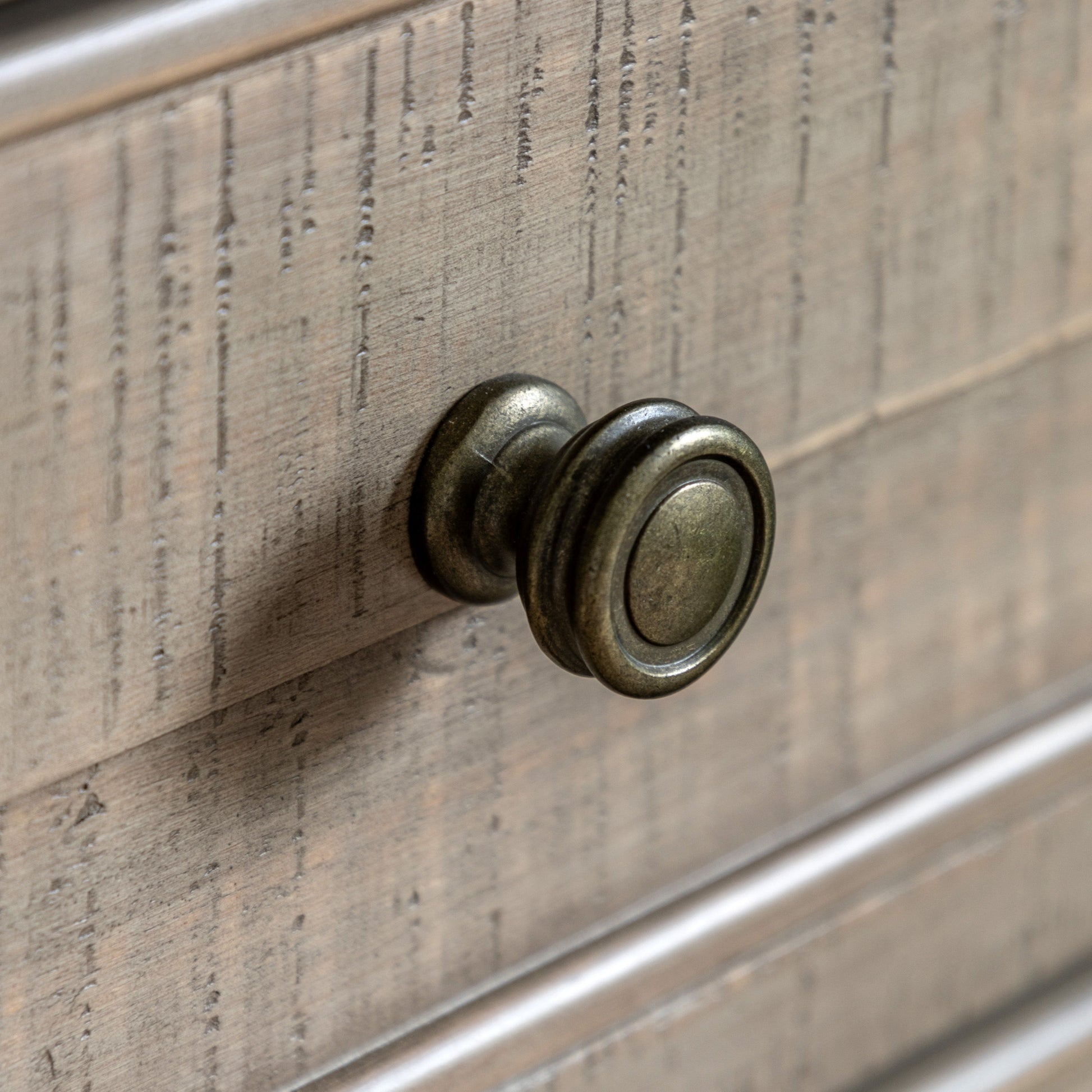 The Burton 5 Drawer Chest is a charming and practical addition to any bedroom. Its weathered wood finish and simple design create a warm and inviting atmosphere. The five drawers provide ample storage space for clothing, linens, and other essentials. Perfect for adding a touch of rustic charm to your space.