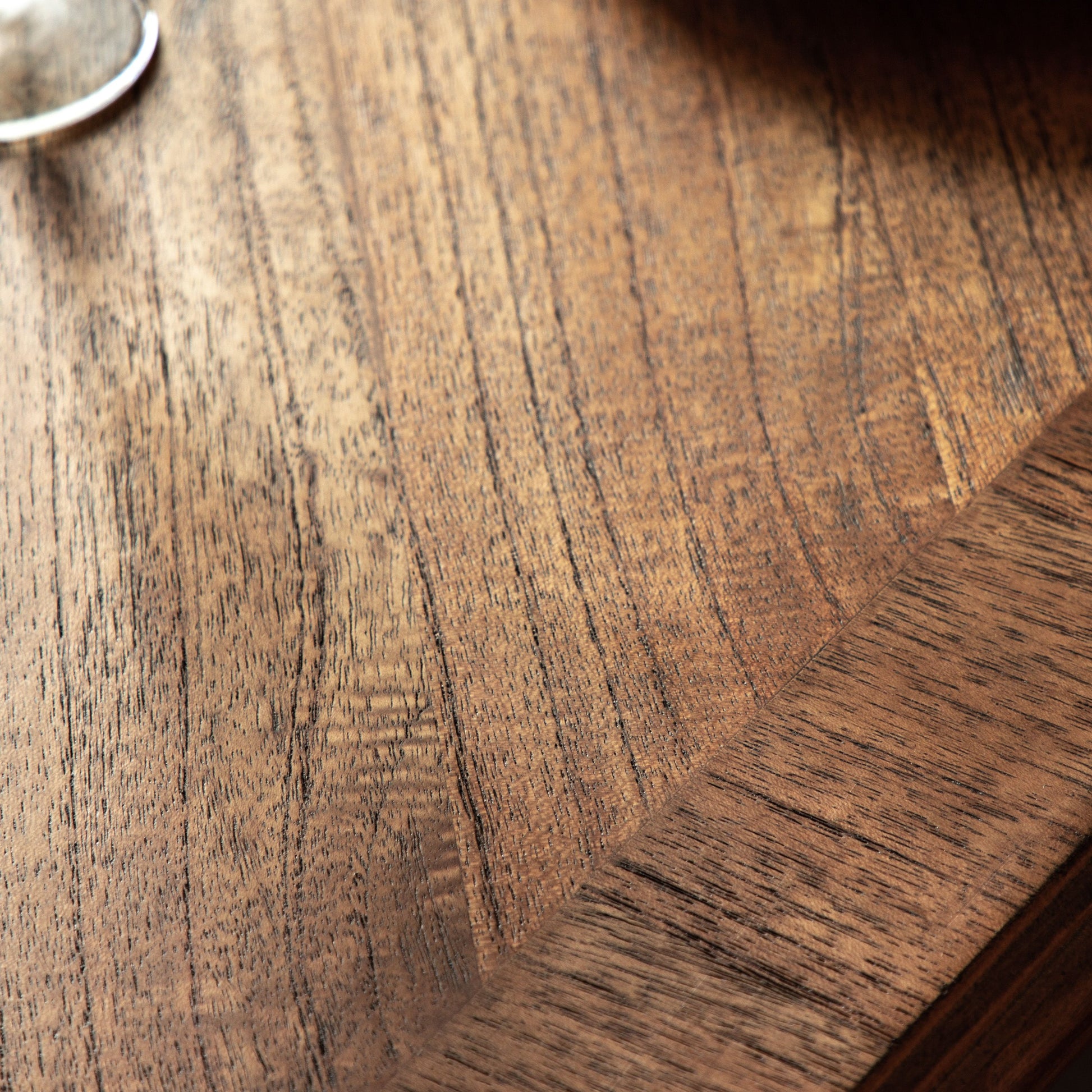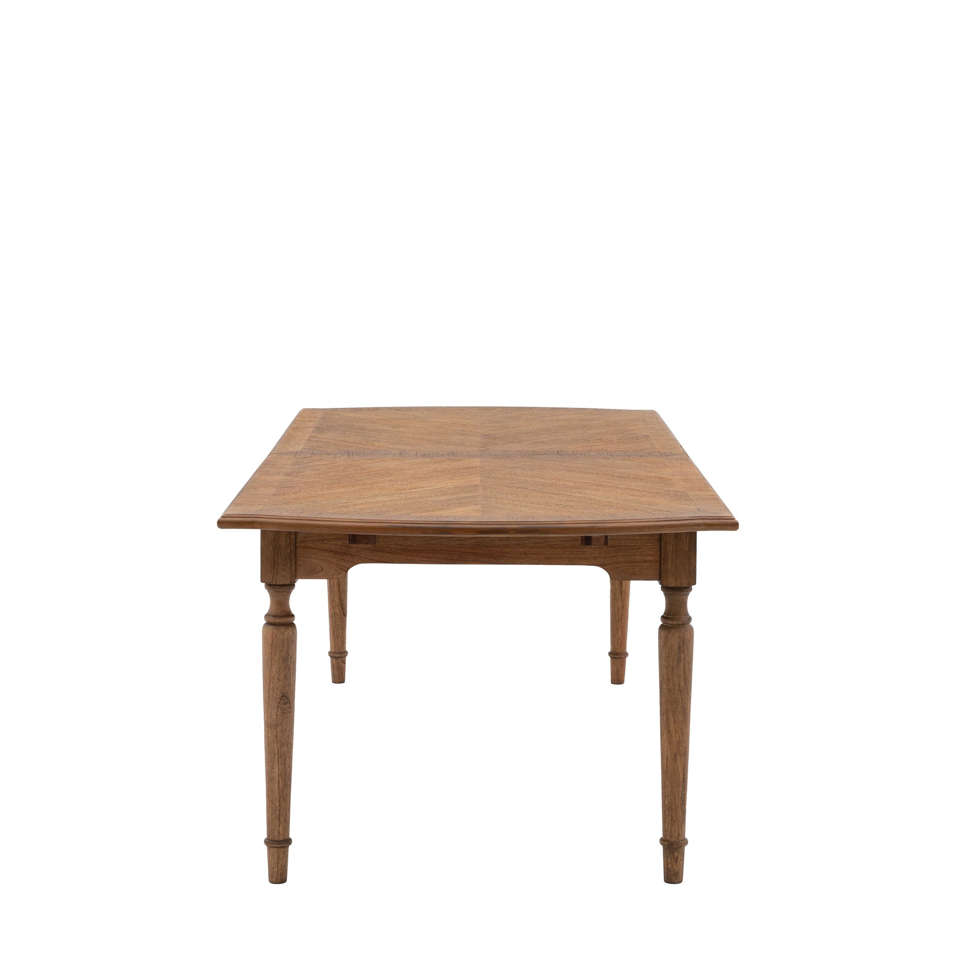 Designed to offer a 'new traditional' look with its timeless elegant style with a modern touch, this stunning table will add a sophisticated look to a room. The beautiful marquetry in a stunning rich tonal mid brown Mindy wood solids & veneers features inlaid book-matched details for a elegantly refined look. For added practicality the table has butterfly centre leaves, so it can be extended to seat up to 10 people.