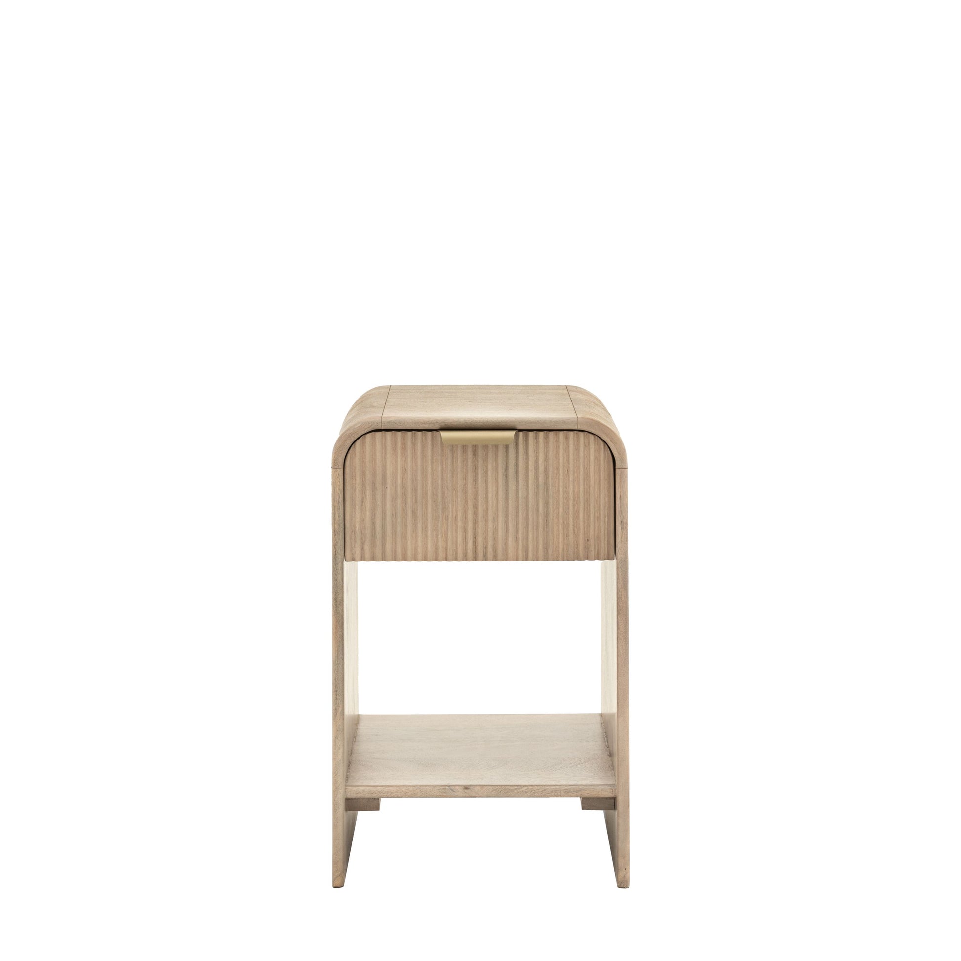 The Clinton Bedside Table, with its curved design and fluted drawer, adds a touch of modern elegance to any bedroom. Crafted from high-quality wood, it offers both style and functionality. The spacious drawer and lower shelf provide ample storage for books, glasses, and other bedside essentials.