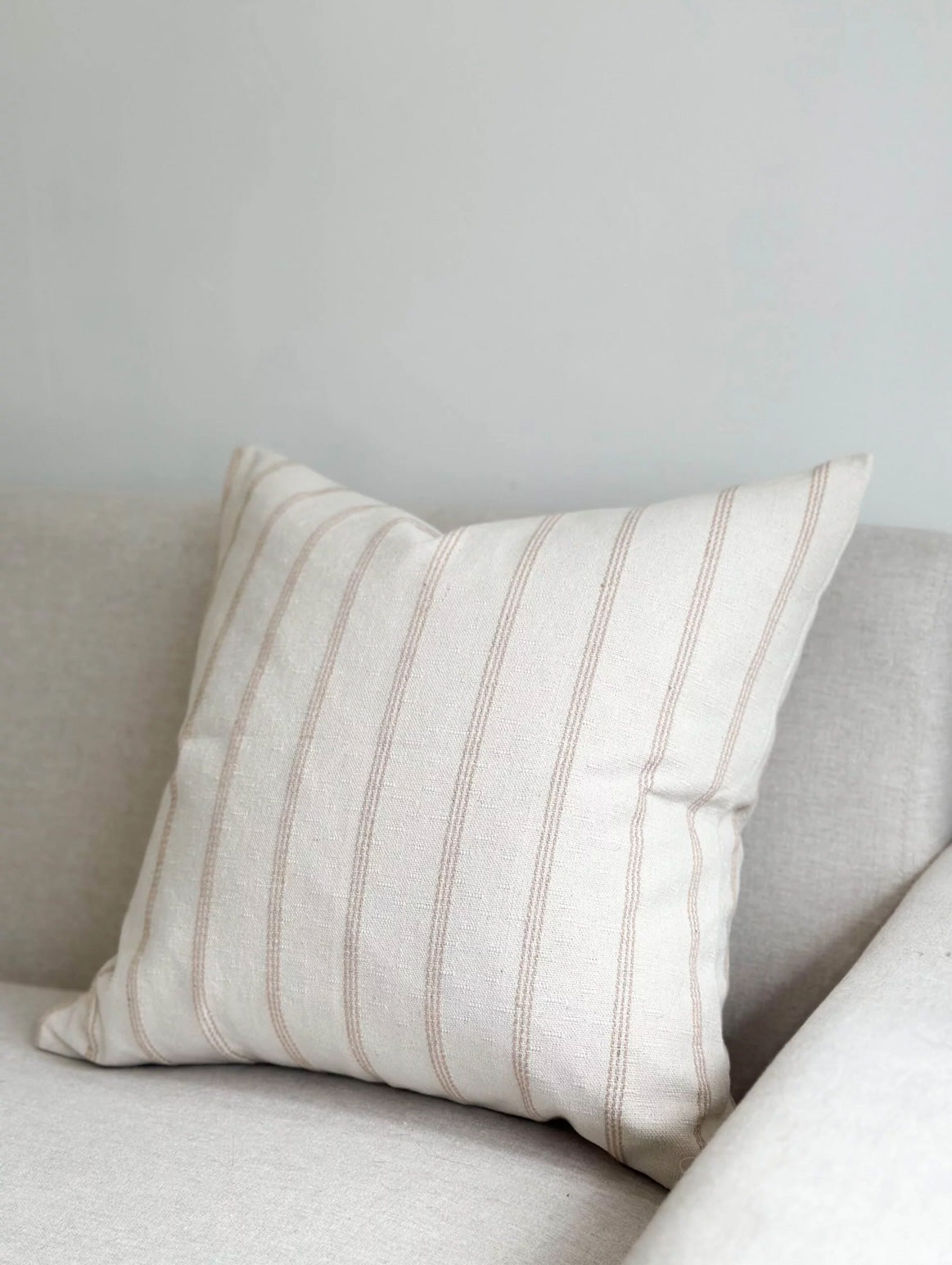 The Elise Cushion Cover is oatmeal with a beige stripe.