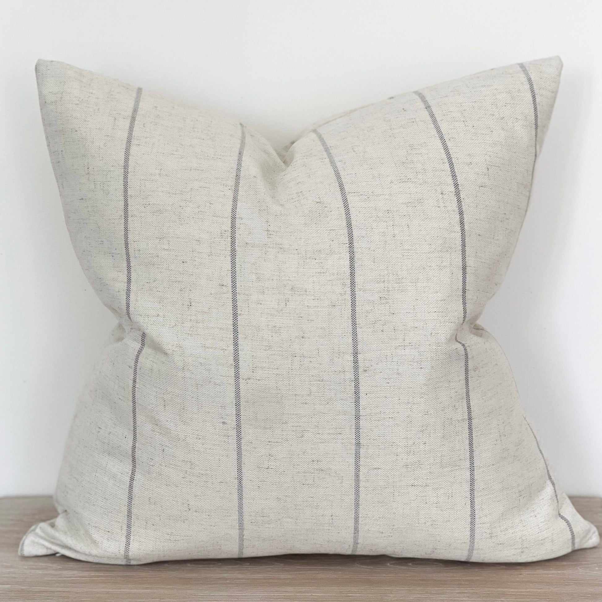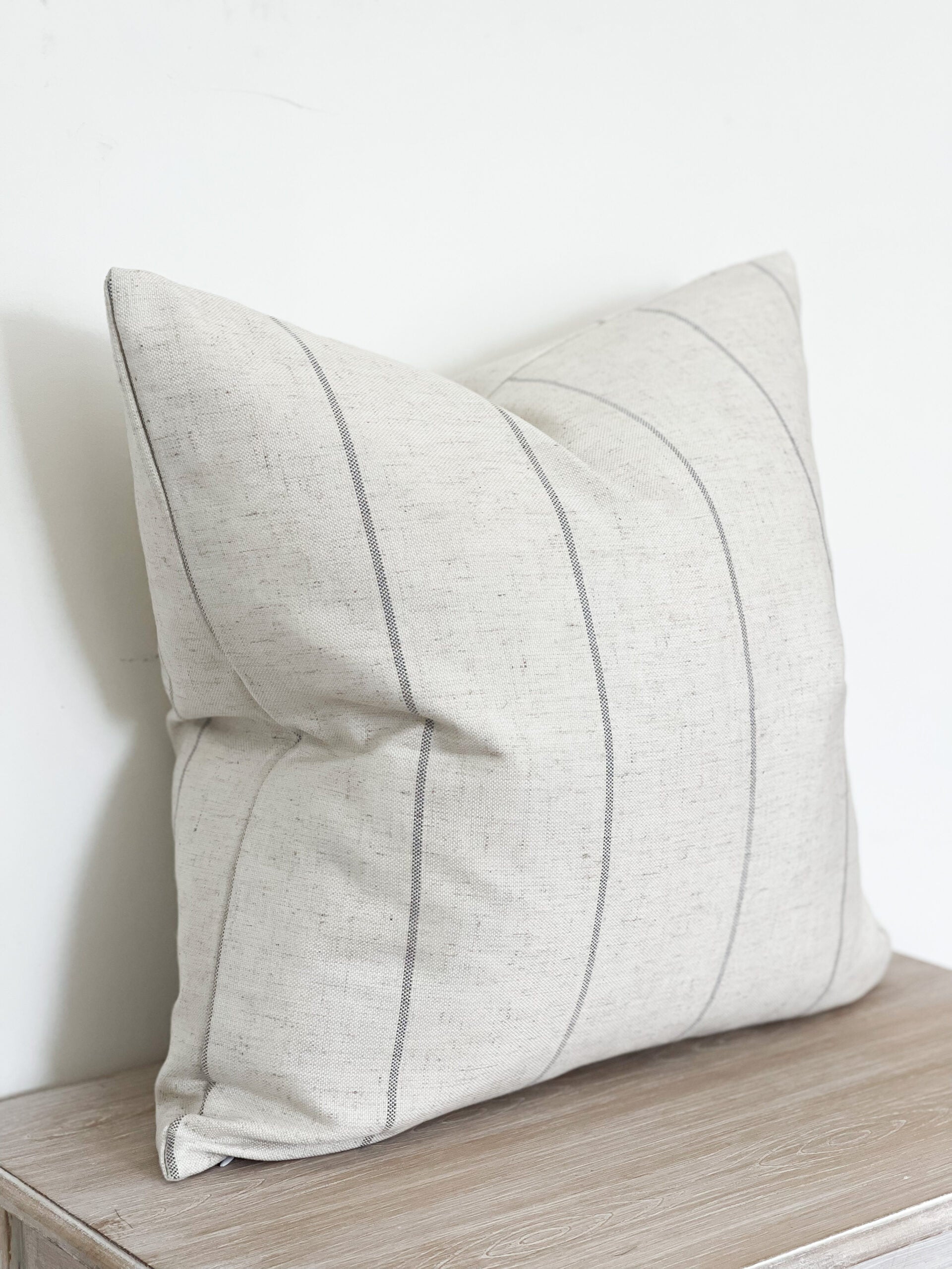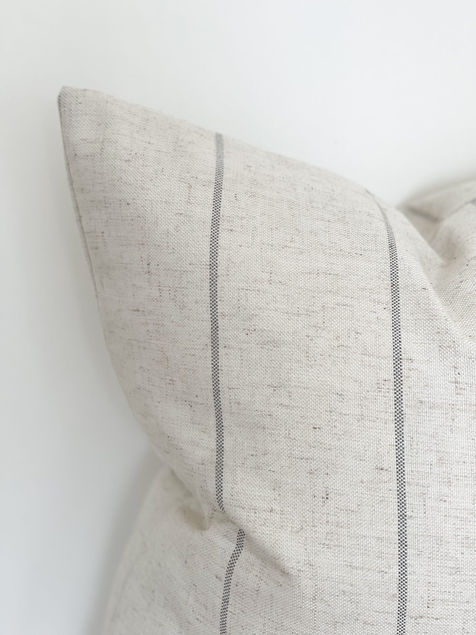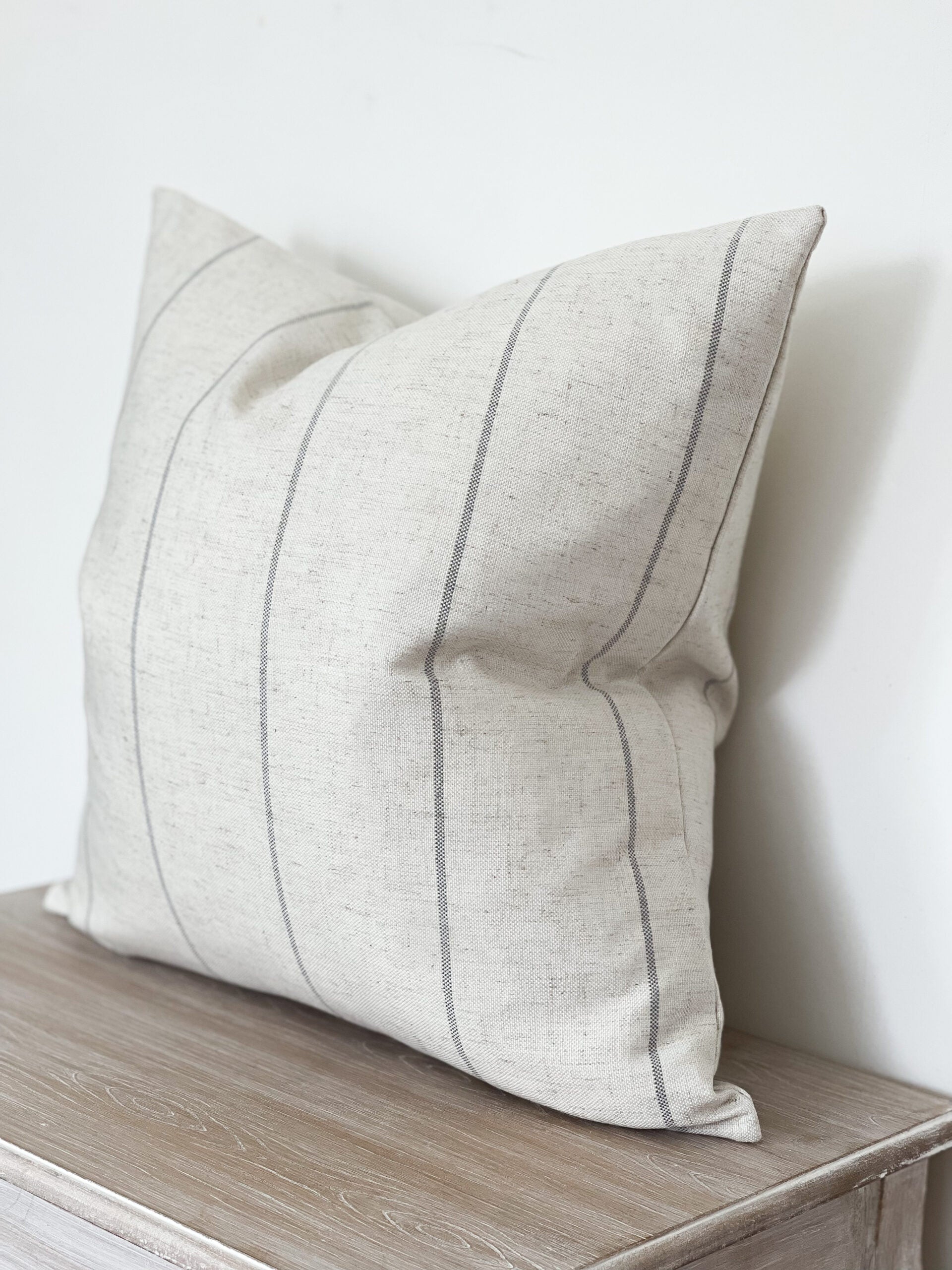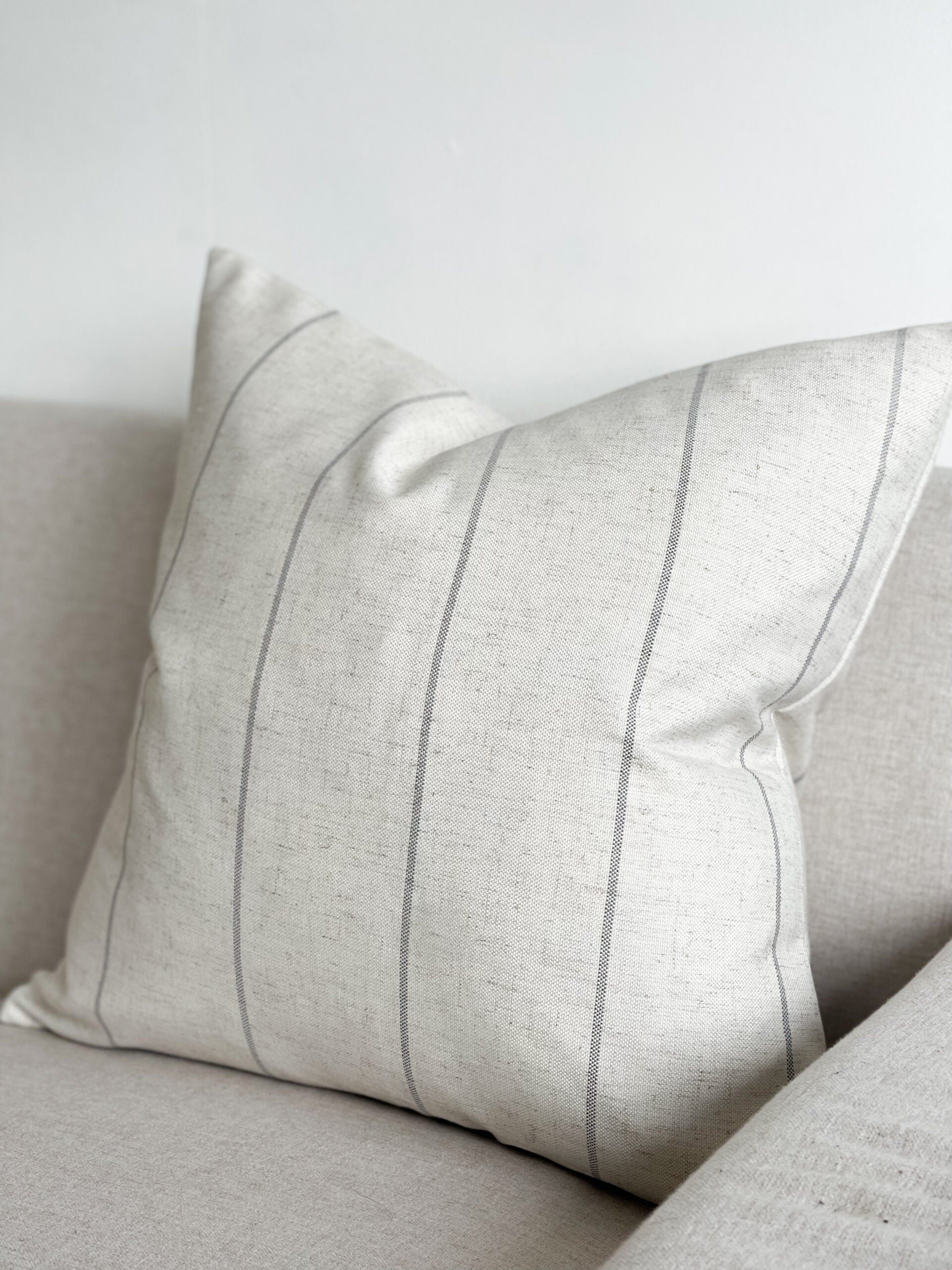 The Emily Cushion Cover has a stone coloured background with a grey stripe.