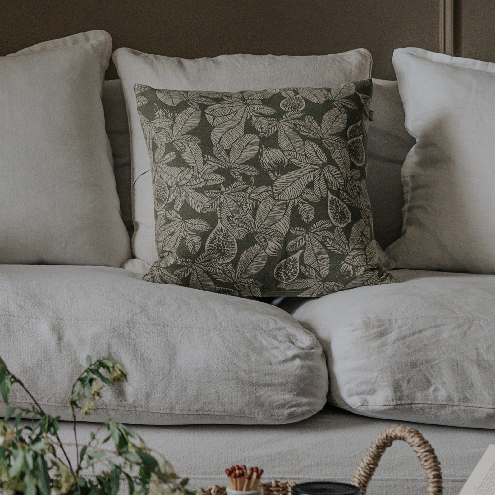 The Fig Tree Cushion has a hand drawn botanical print. It comes complete with a luxury feather insert.