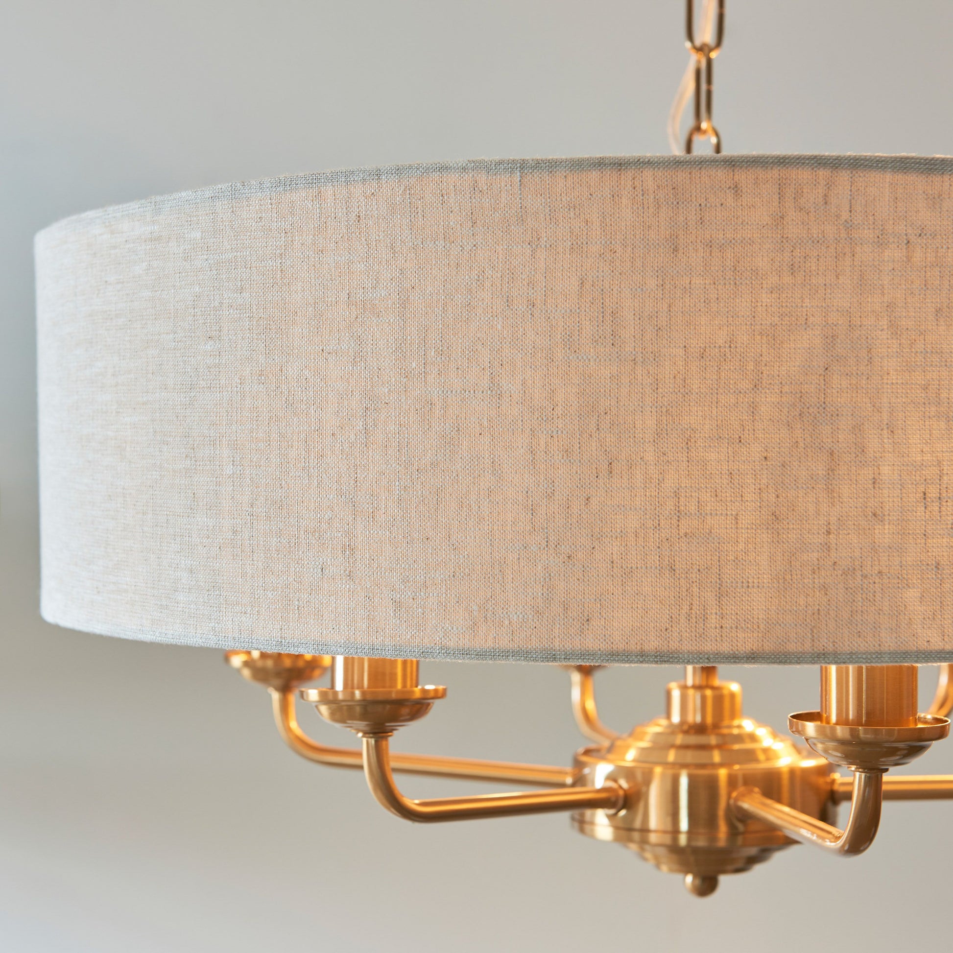 The Galway pendant is a sophisticated mix of a single large natural linen fabric shade, with matching colour cotton inner and vintage brass plated metalwork. This statement light is the perfect timeless addition to modern and classic homes.