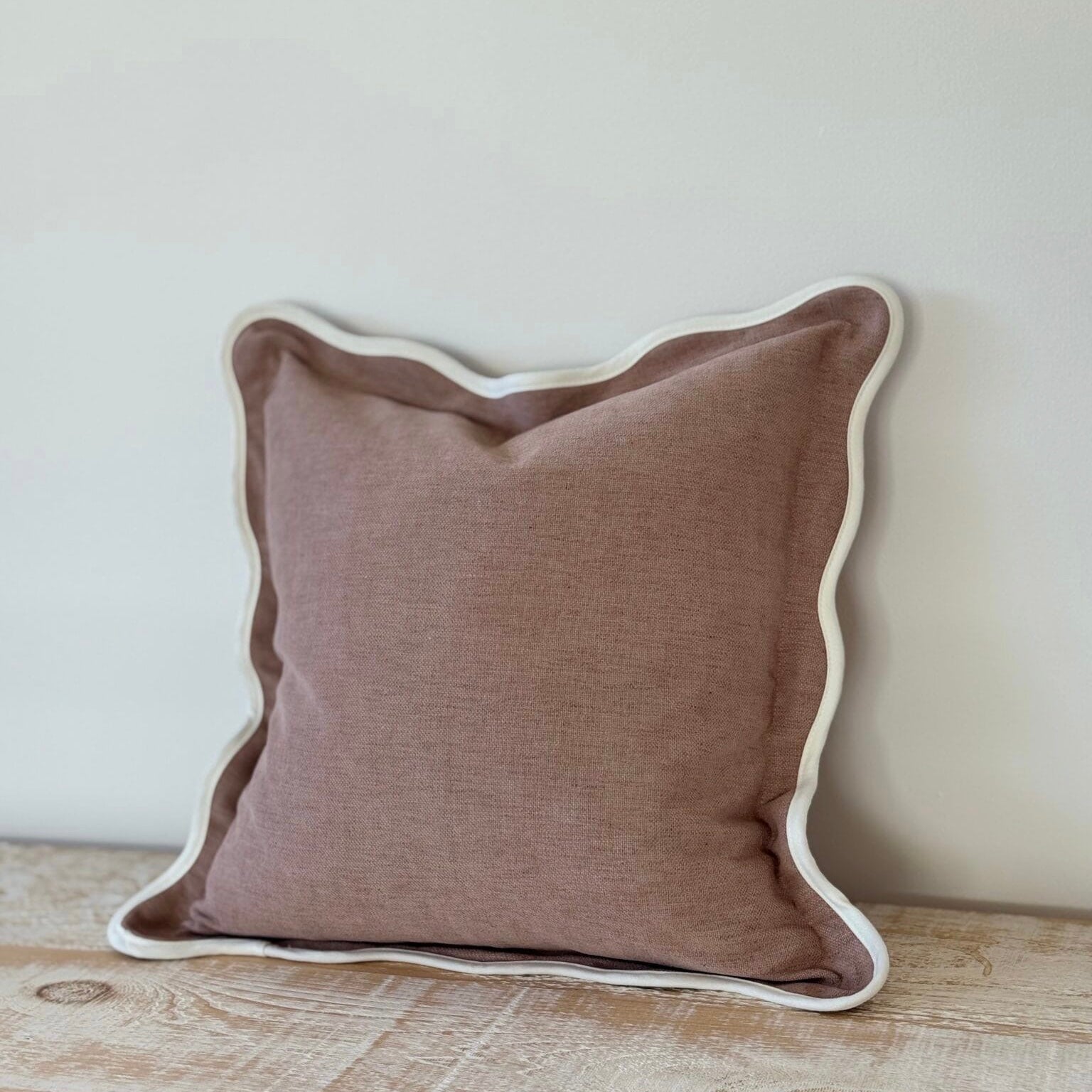 The Georgia is a dusty pink cushion cover with a beautiful scalloped edge with a cream trim.