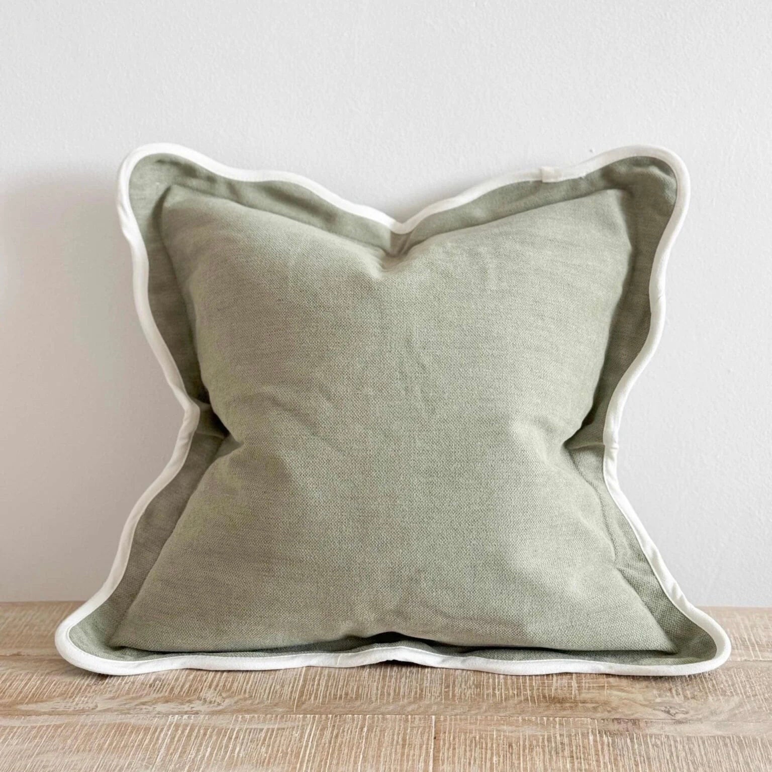 The Georgia is a sage cushion cover with a beautiful scalloped edge with a cream trim.