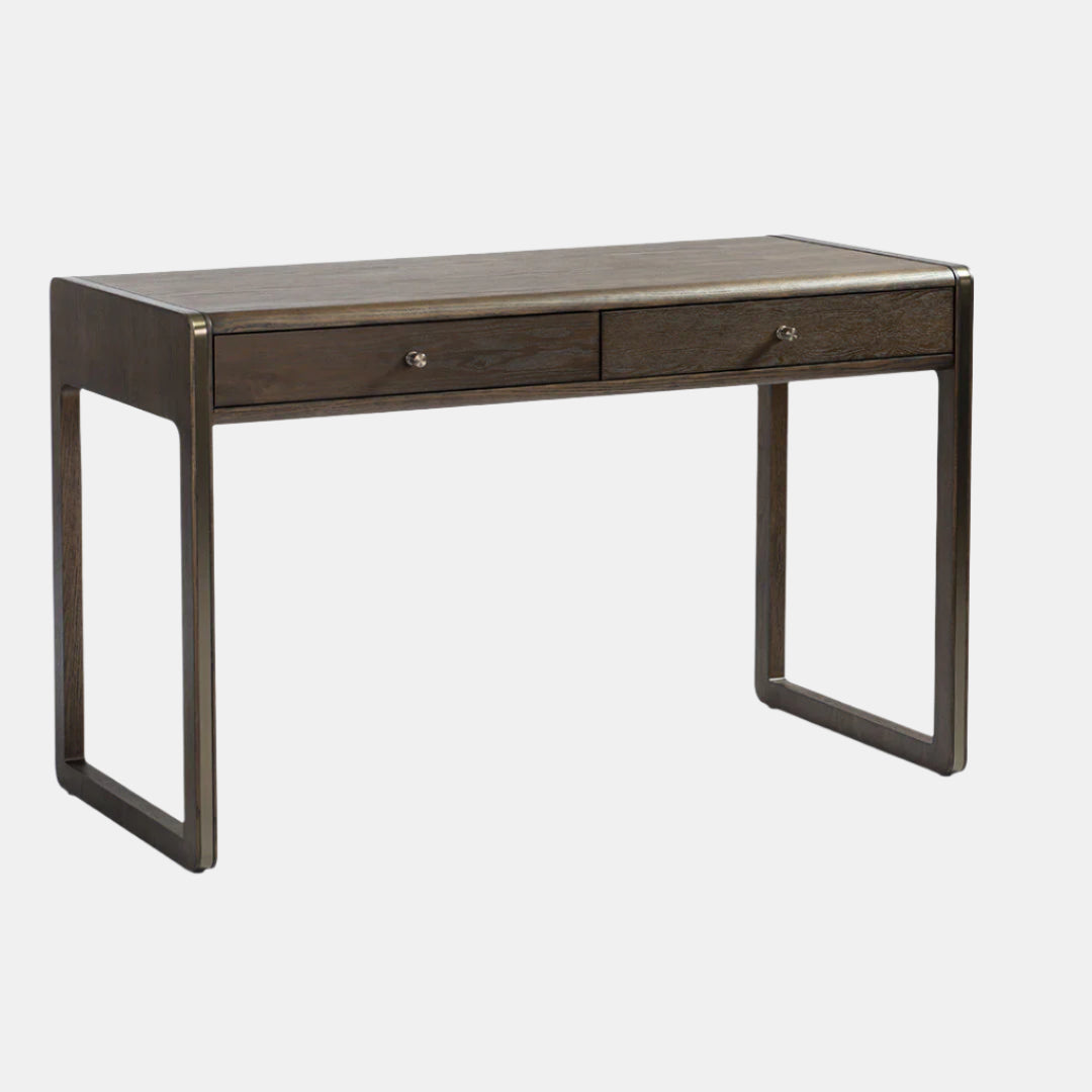 The Daley Dressing Table is an exquisite piece that's sure to elevate any interior. Crafted from chocolate wood with dark brass detailing, this piece is both elegant and functional. Its chic design and elegance is the perfect addition to any bedroom; it'll bring a touch of sophisticated, timeless flair for all to appreciate.