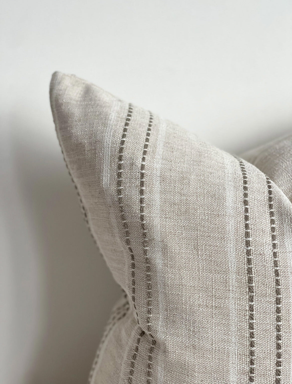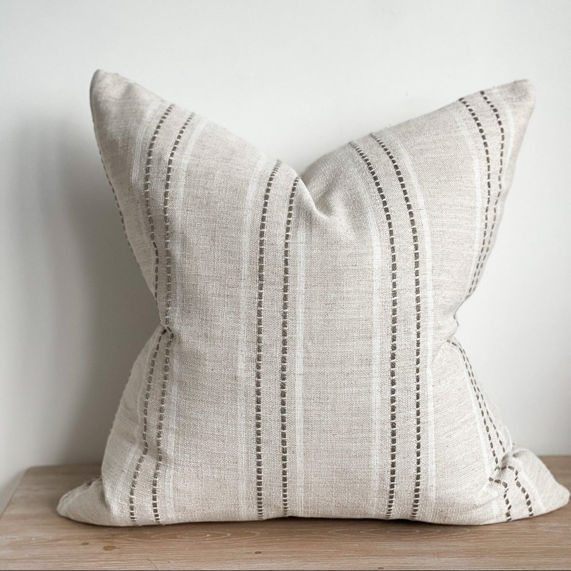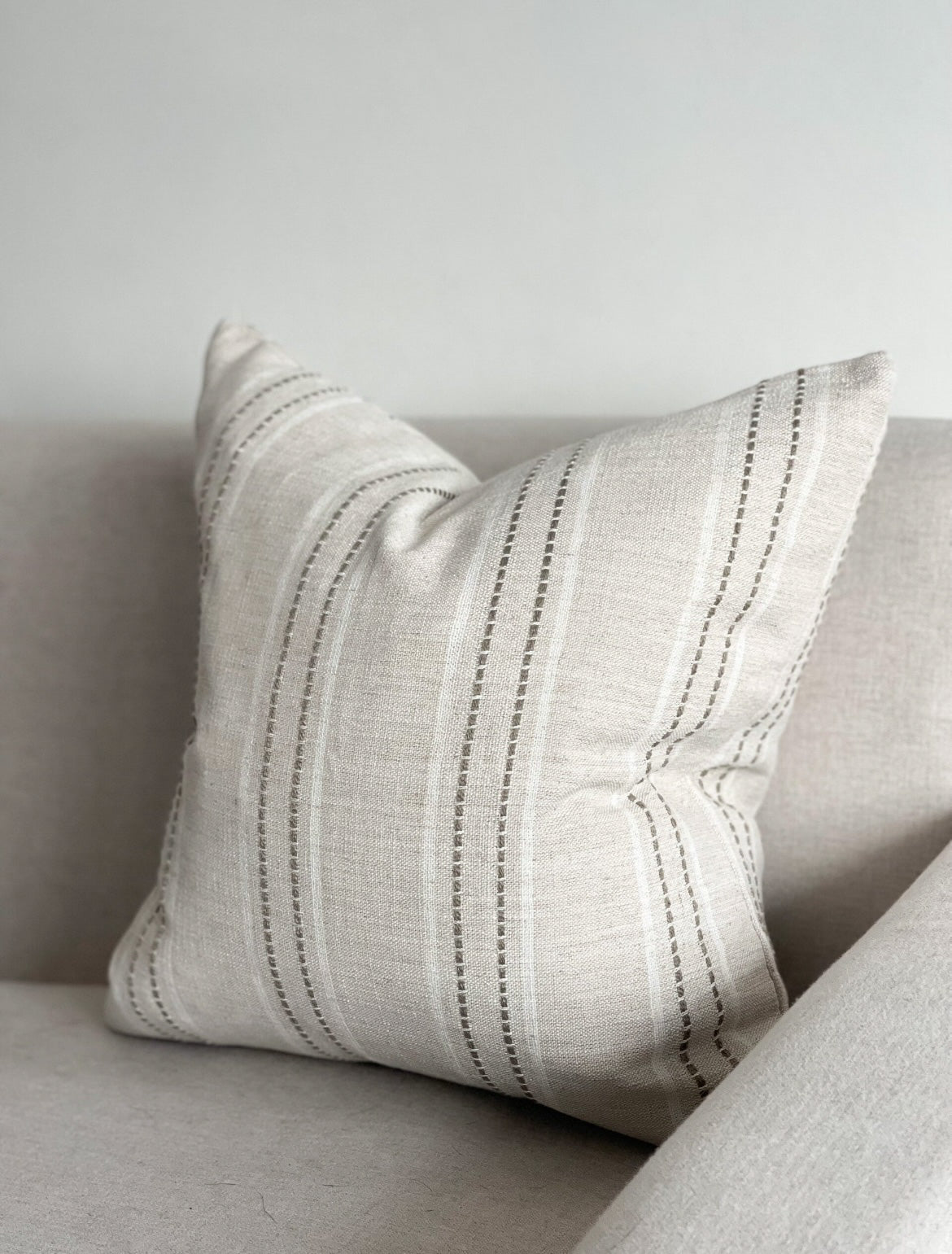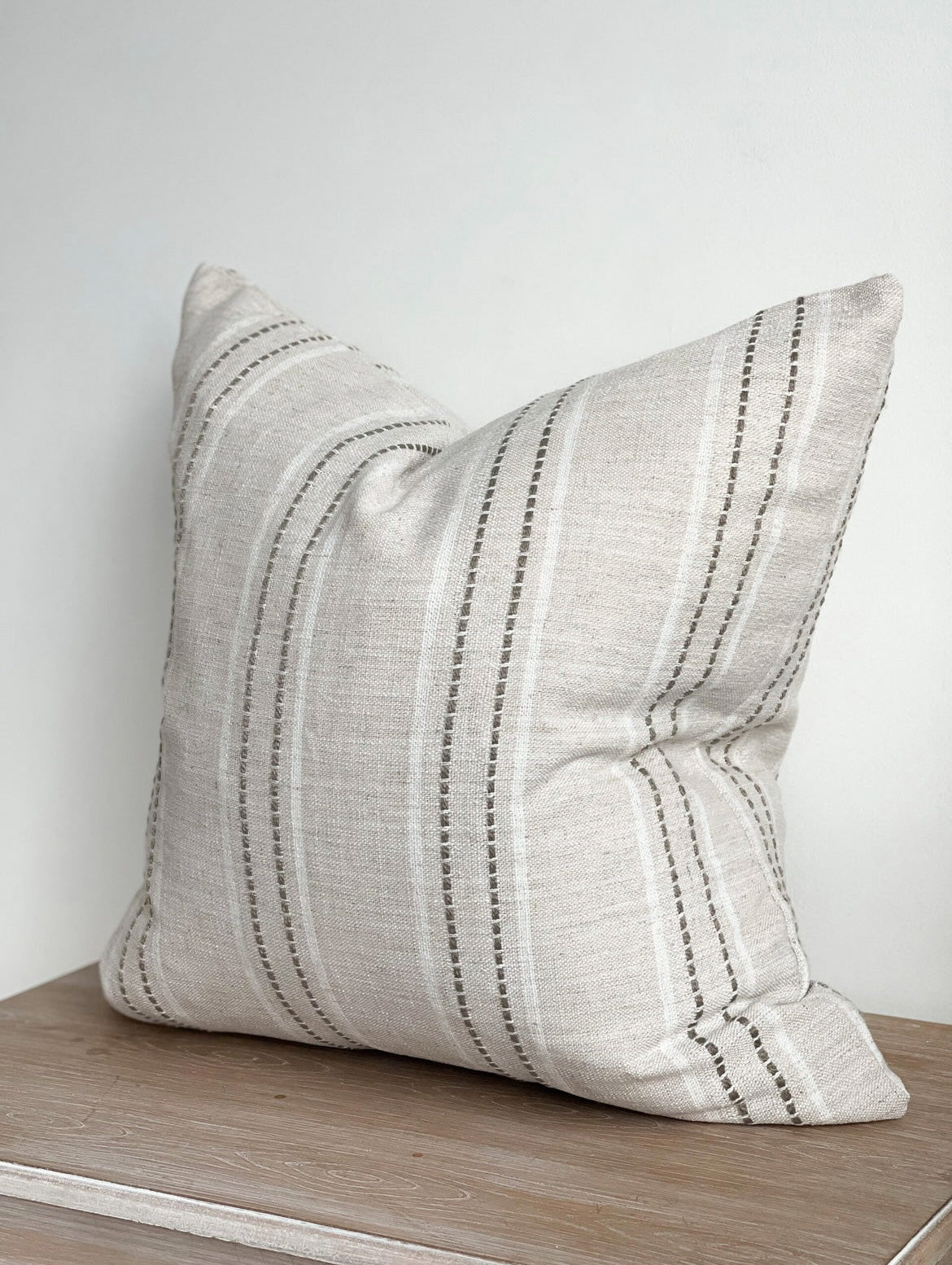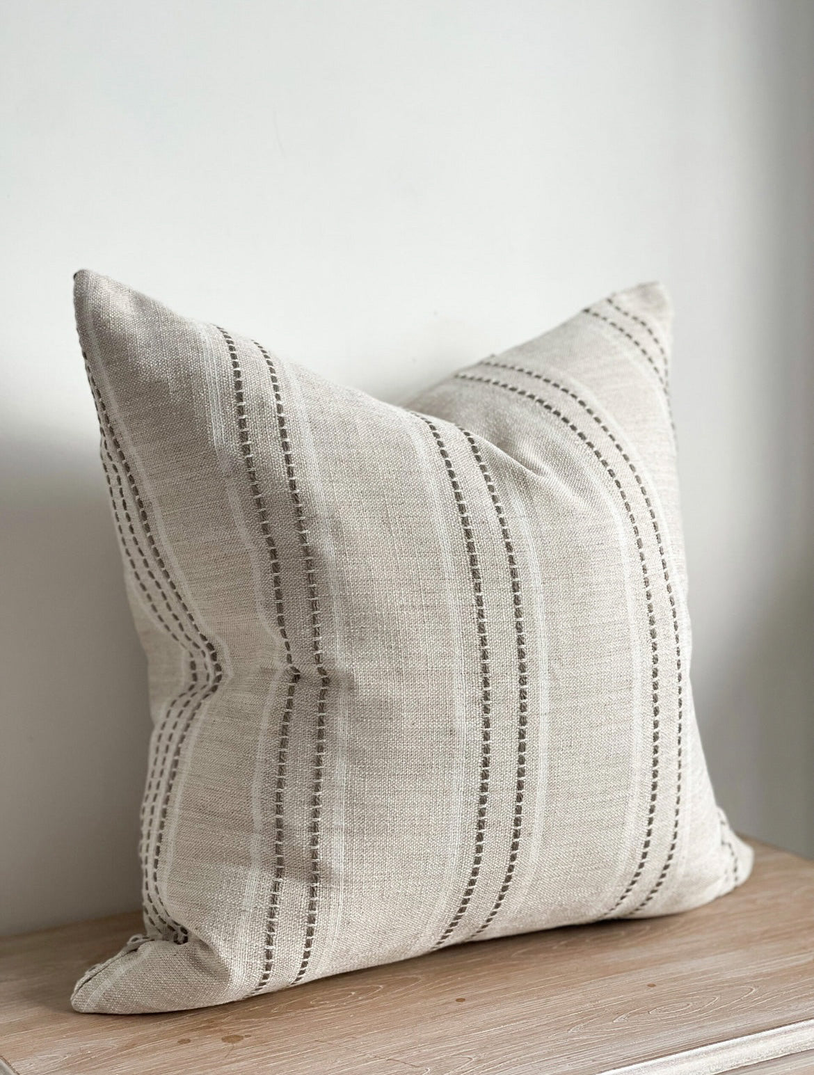 The Harrison Cushion Cover has a cream background with a series of stripes.