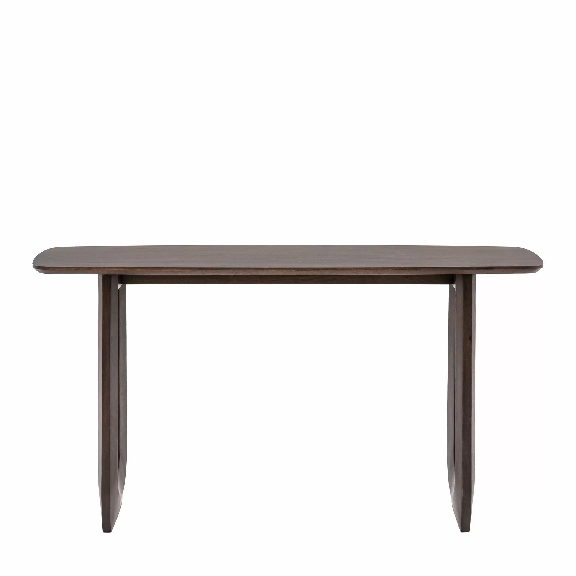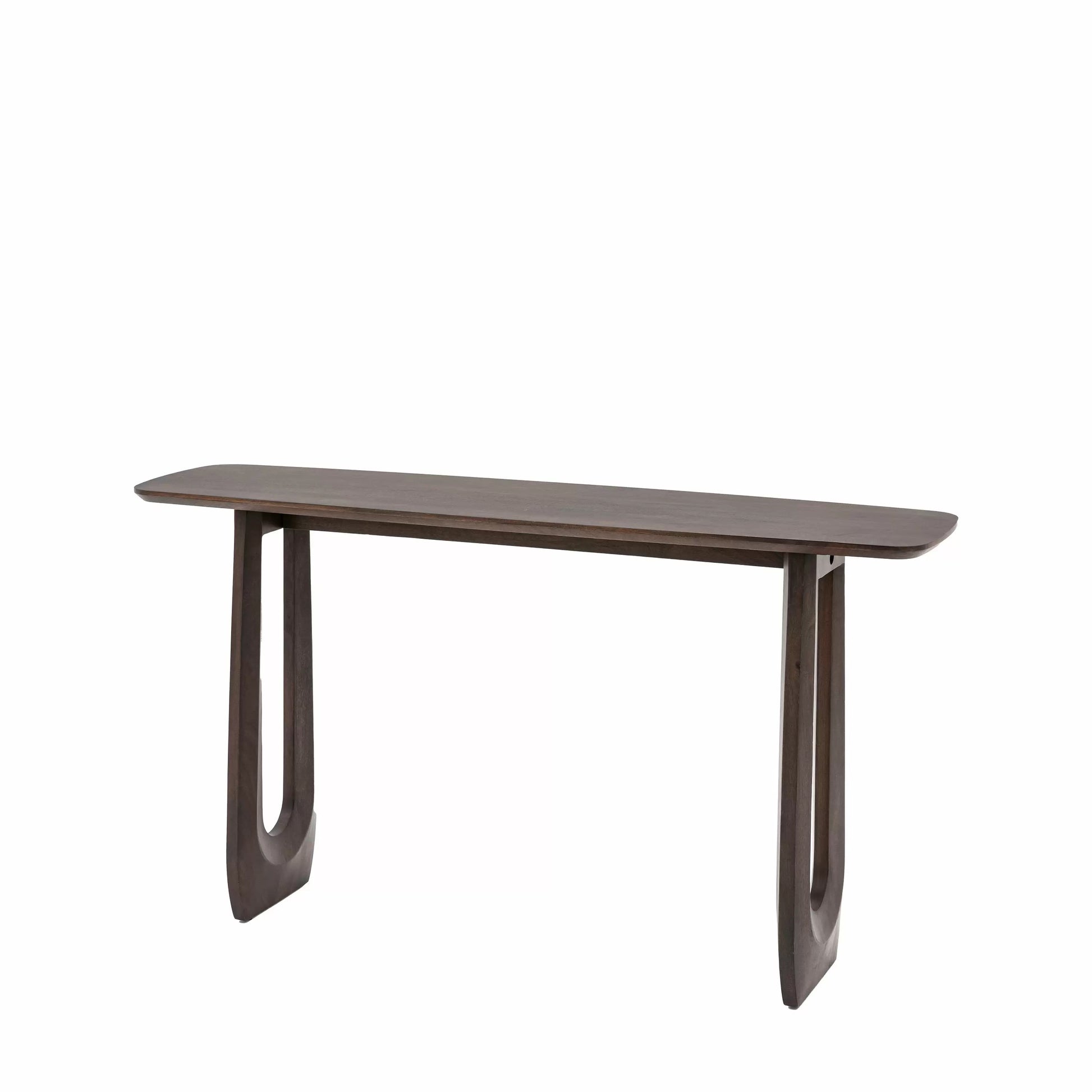 Make a style statement with this bold and beautiful 70s influenced console table. Perfect as either a slim desk or a console table, the dark stained Mango wood is full of rich grains while the eye caching carved U shaped legs add the final touch of retro cool.