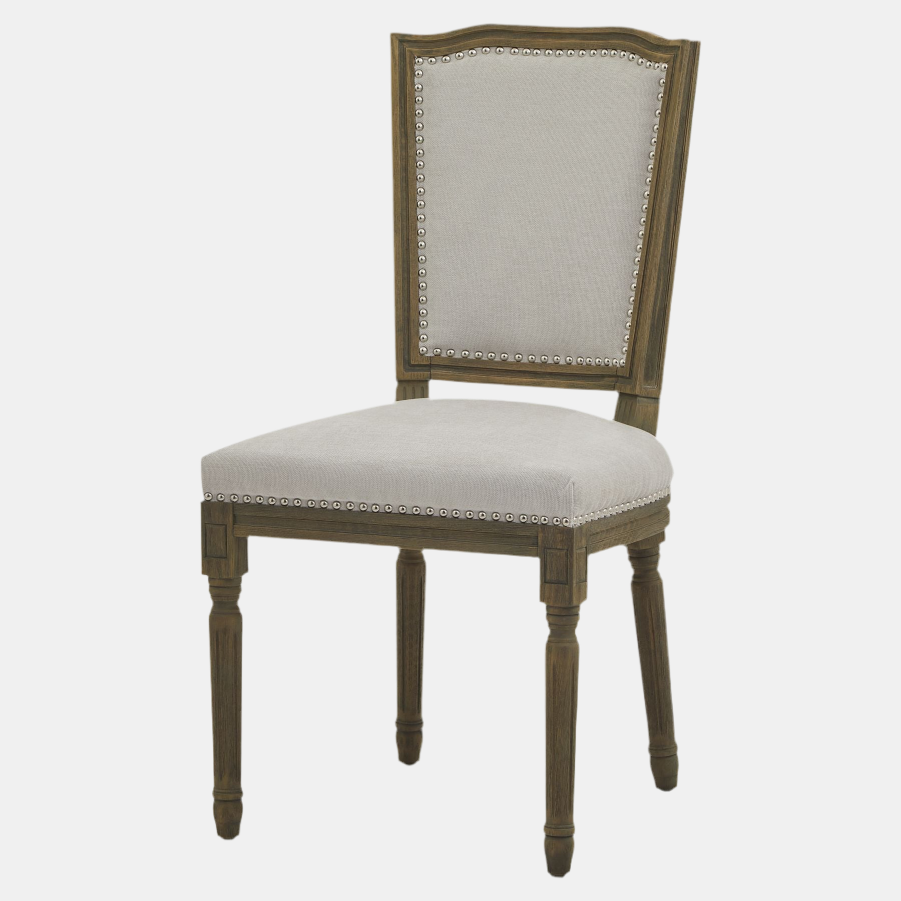 The Lambert Dining Chair, upholstered in a grey woven fabric, is a perfect partner to the Maine Collection’s stunning dining table, thanks to its washed wood finish. Beautiful hand carving really finishes its look.