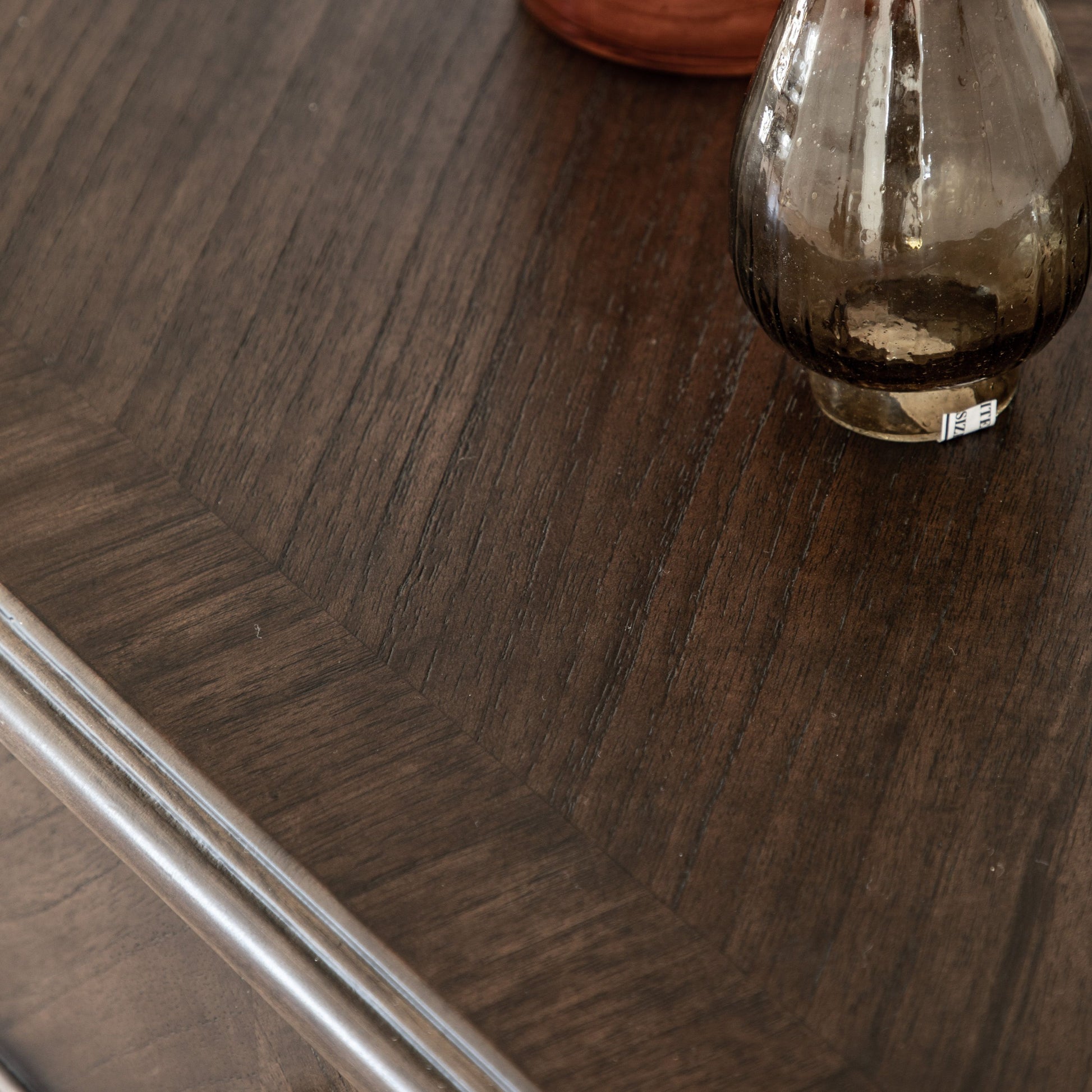 With its three cupboards and three drawers, this stunning sideboard is an elegant storage solution. Featuring beautiful marquetry in exquisite dark salvaged coffee colour Mindy wood veneers, solid wood turned legs and satin brass handle pulls the sideboard offers a 'new traditional' look and a touch of timeless, elegant style.
