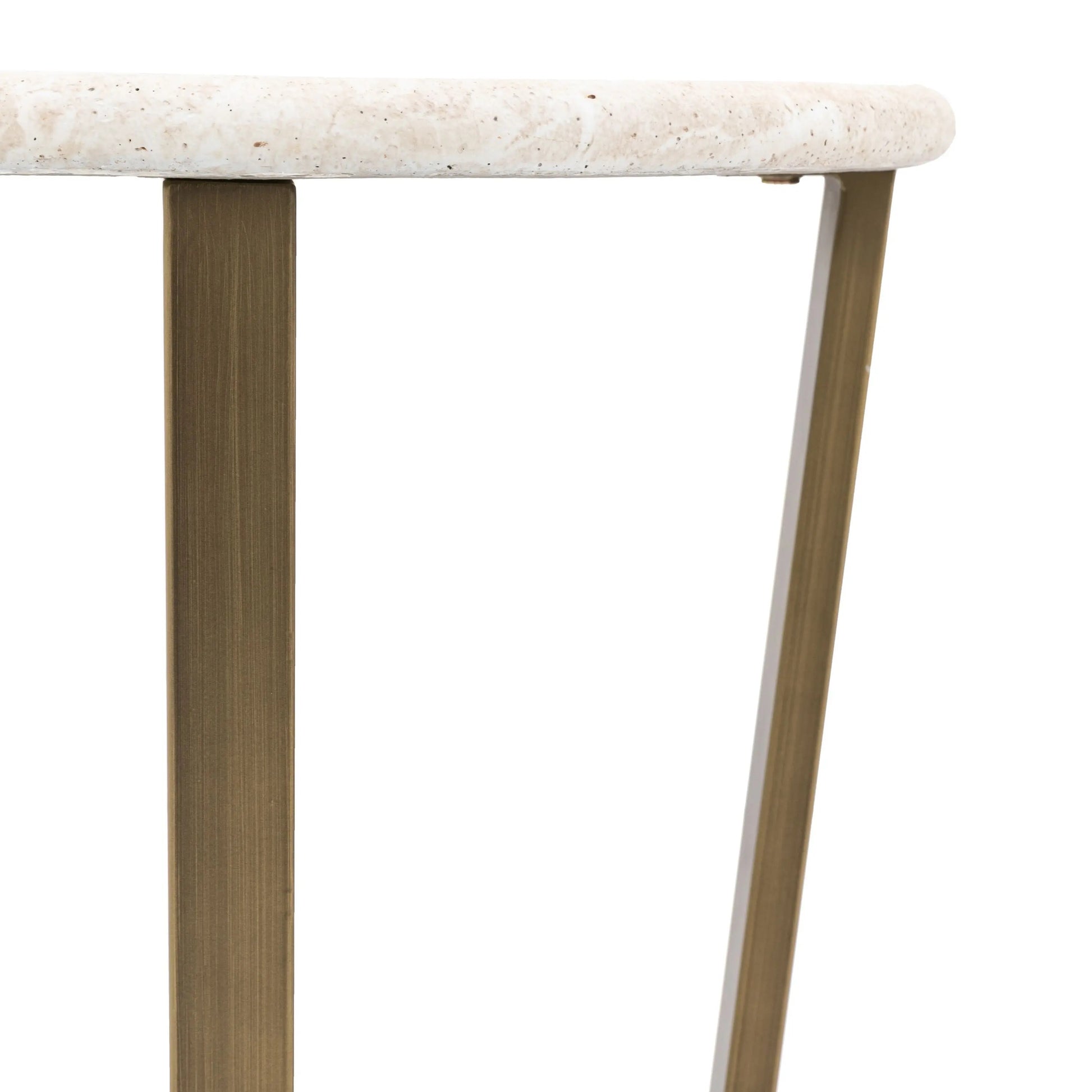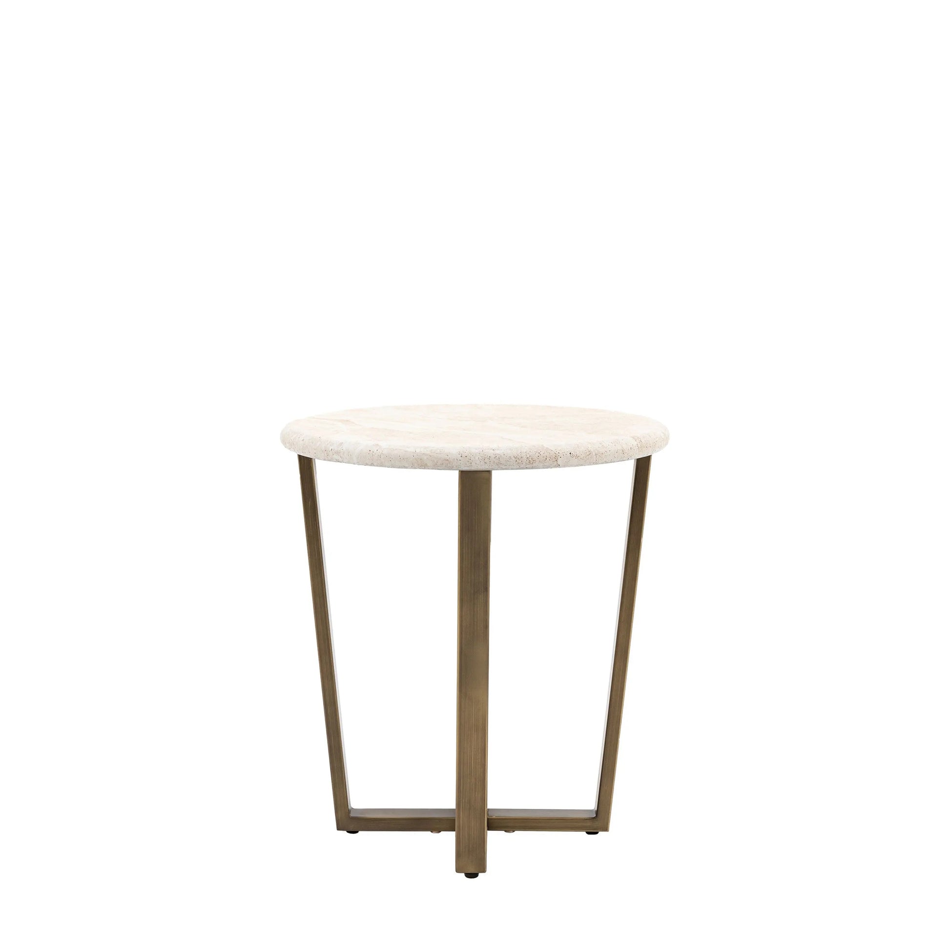 The Maddock Side Table will add a touch of sophisticated elegance to a room. The top features the most amazing travertine faux finish which is created with the latest state of the art technology to give the look and feel of the real thing but without the weight and technical difficulties. The faux travertine is perfectly complemented by the metal base which has a classy bronzed brass finish, to give an understated luxury style.