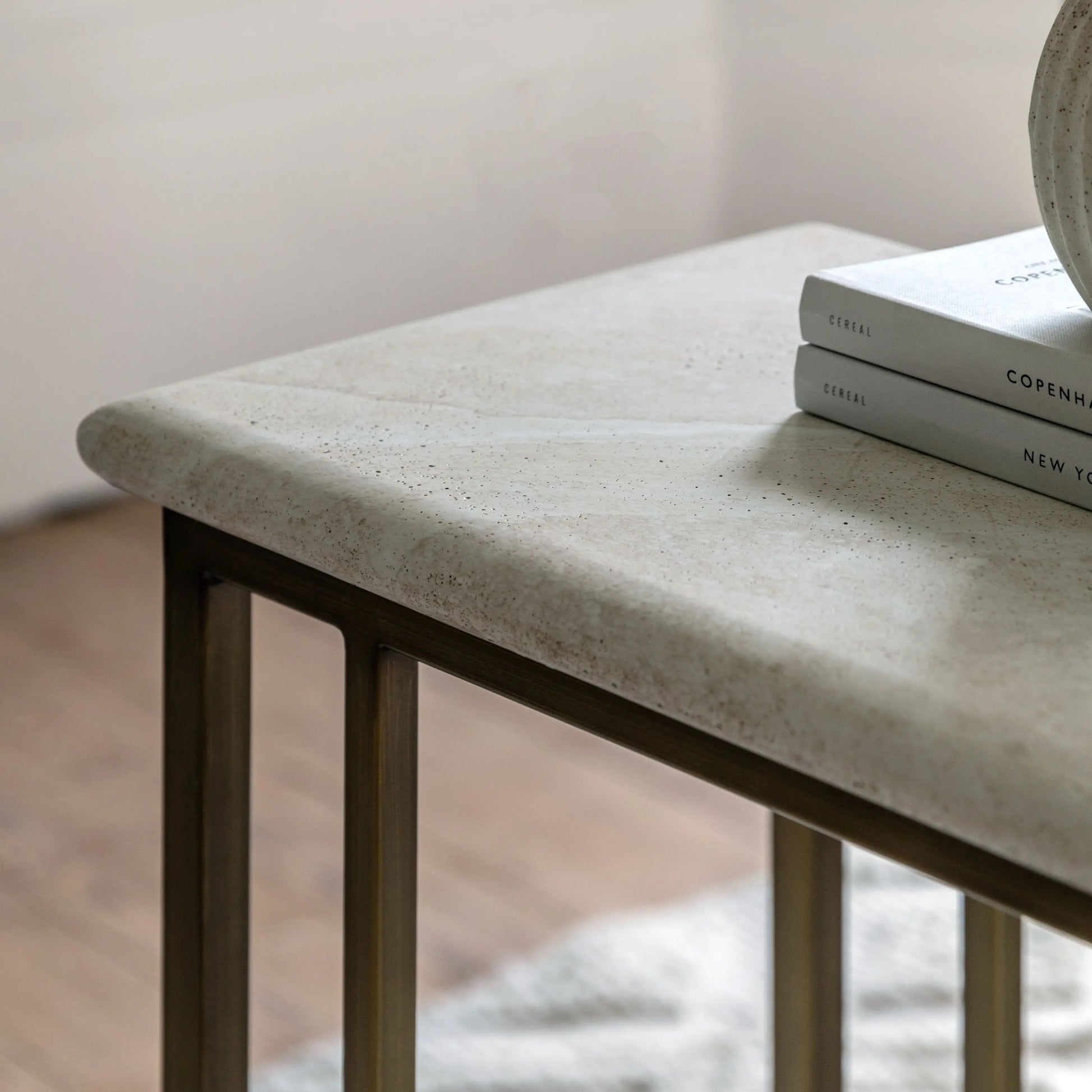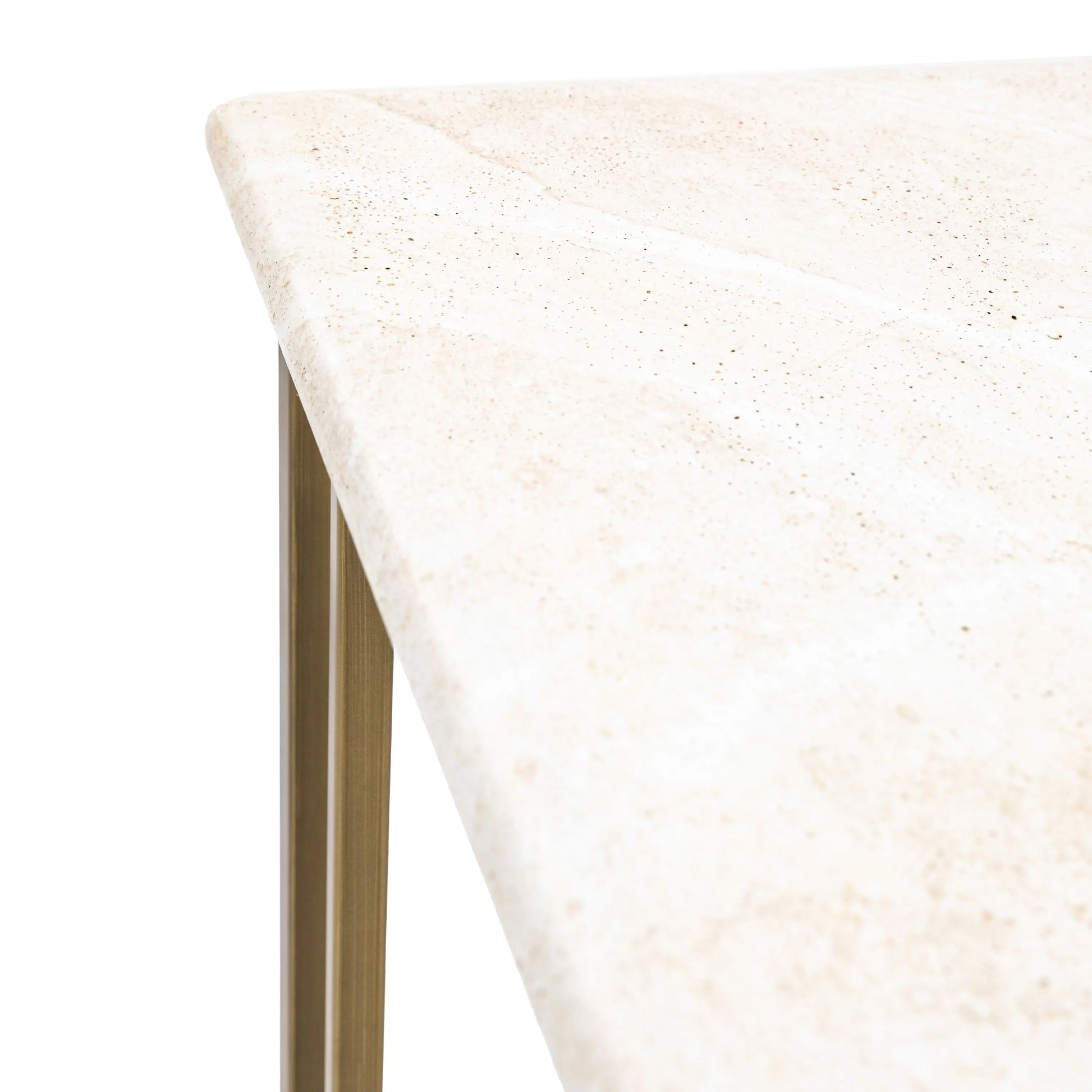 The Maddock Supper Table will add a touch of sophisticated elegance to a room. The top features the most amazing travertine faux finish which is created with the latest state of the art technology to give the look and feel of the real thing but without the weight and technical difficulties. The faux travertine is perfectly complemented by the metal base which has a classy bronzed brass finish, to give an understated luxury style.