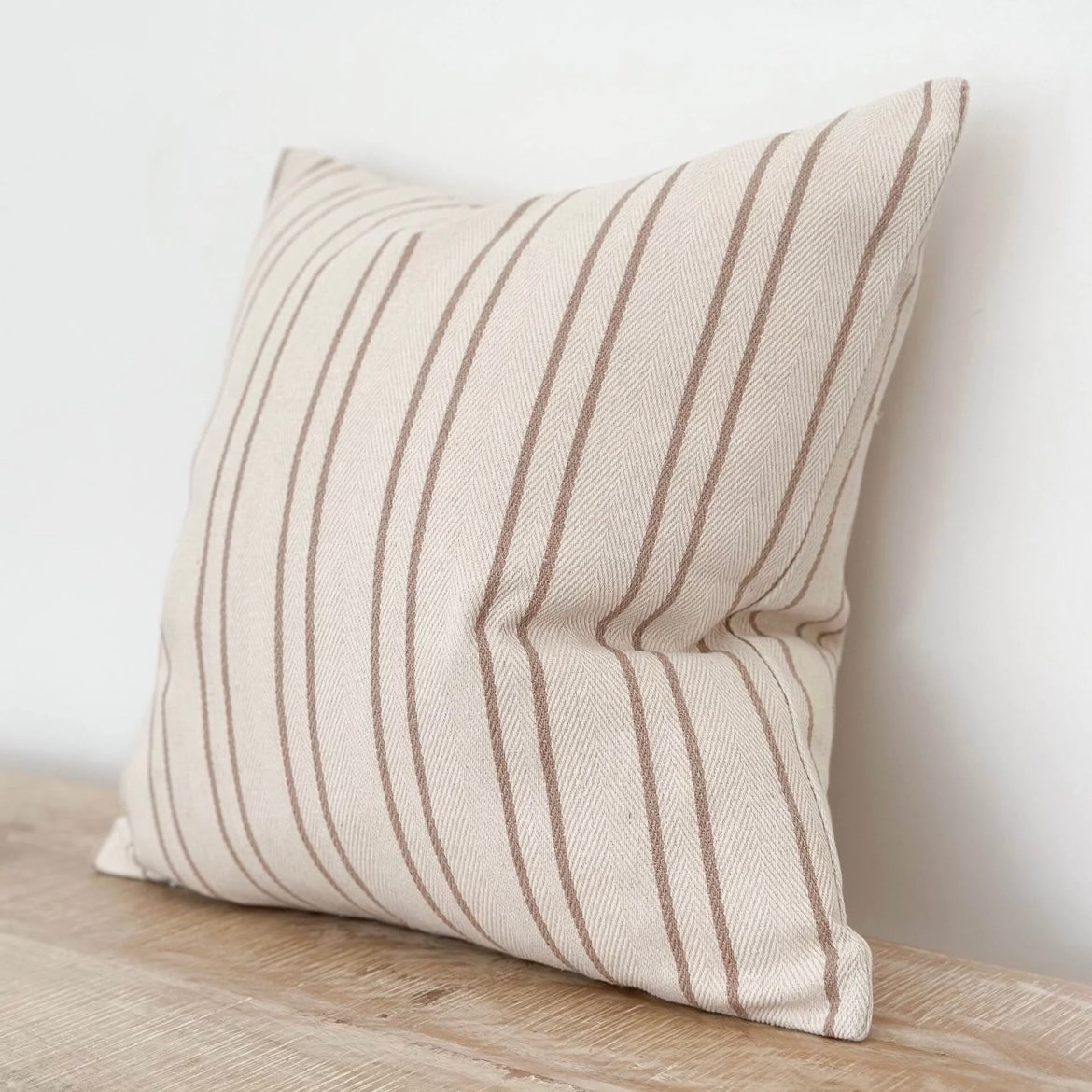 The Morgan Cushion Cover is cream with a double beige stripe.