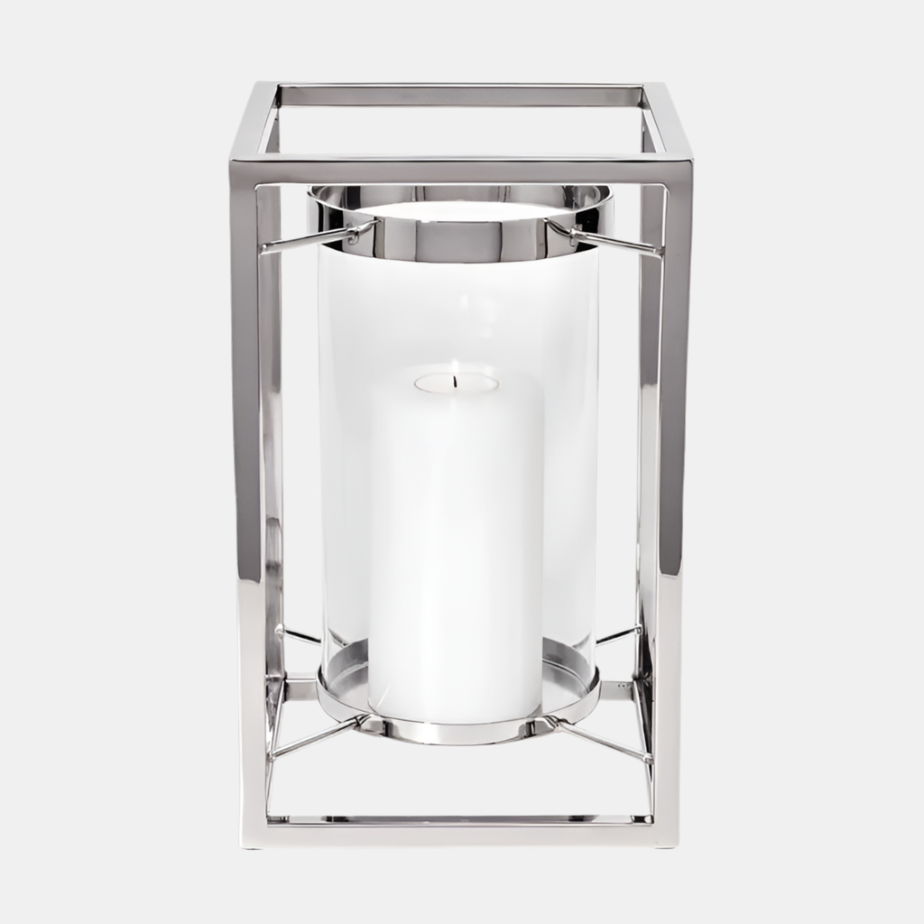 Edzard Nickel-Plated Stainless Steel & Glass Lantern (Height 31cm)