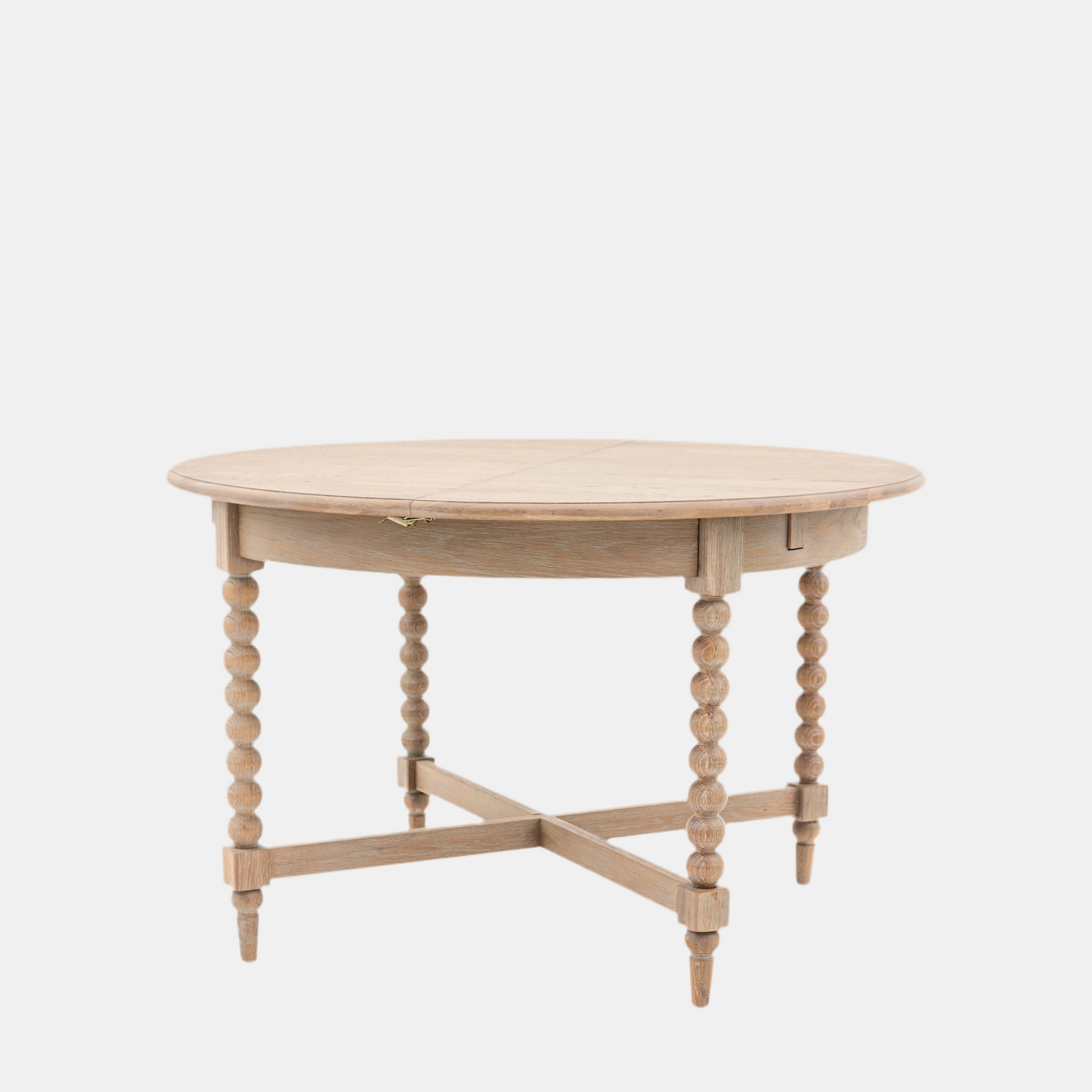 The stunning Quincy dining table will make a classy addition to any dining room, and with its extending top it is both beautiful and practical. The legs feature hand-crafted bobbin detail which is created by turning the wood on a lathe, a task carried out by the finest craftsmen. The table is made using beautiful oak solids and veneers where practical, with a very subtle lime wash tone to the finish which is soft and mellow.