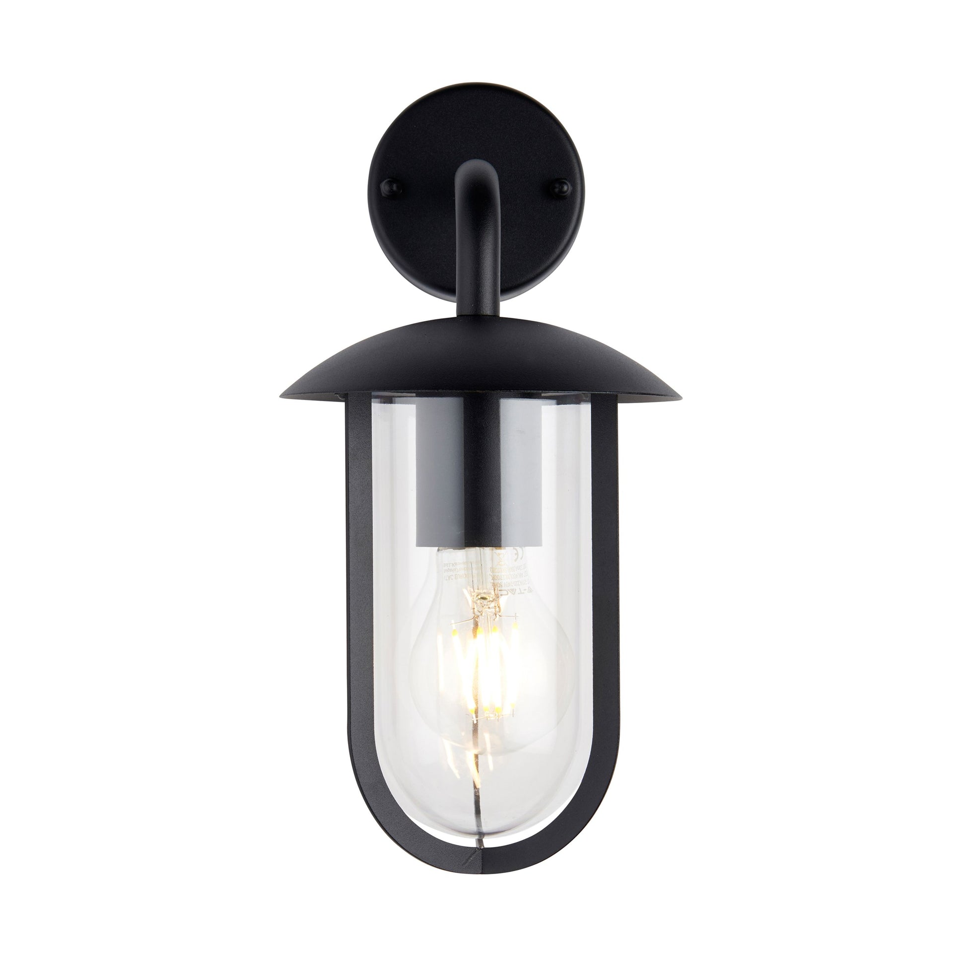 Subtle details make this modern design exterior wall light a beautiful addition to outdoor decor. Showcasing textured black finish metalwork with a clear shade, made with corrosive resistant aluminium. IP44 rated for safe exterior use, with a dimmable function and perfect with E27 LED filament lamps.