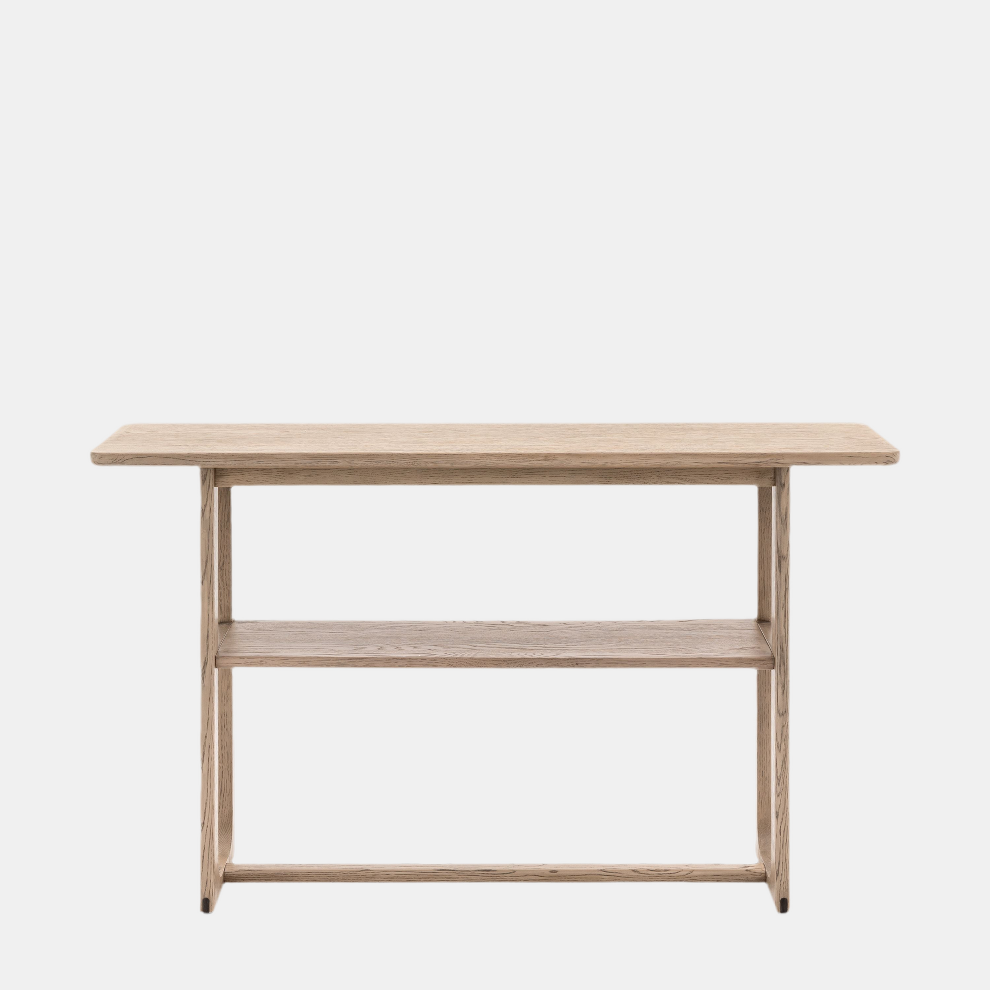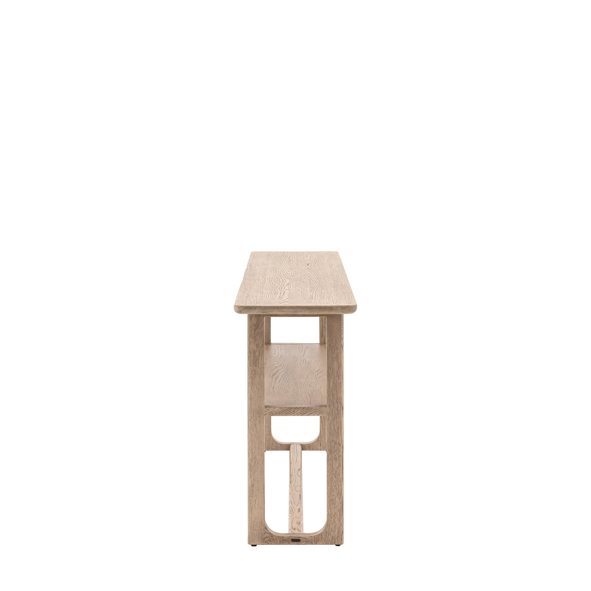 Crafted from the finest oak and structural oak veneers where practical, this beautiful console table would suit a wide range of interiors. The elegant underframe offers structural stability combined with style and the shelf adds extra practicality to the table. The wood has a lovely smoked oak finish.
