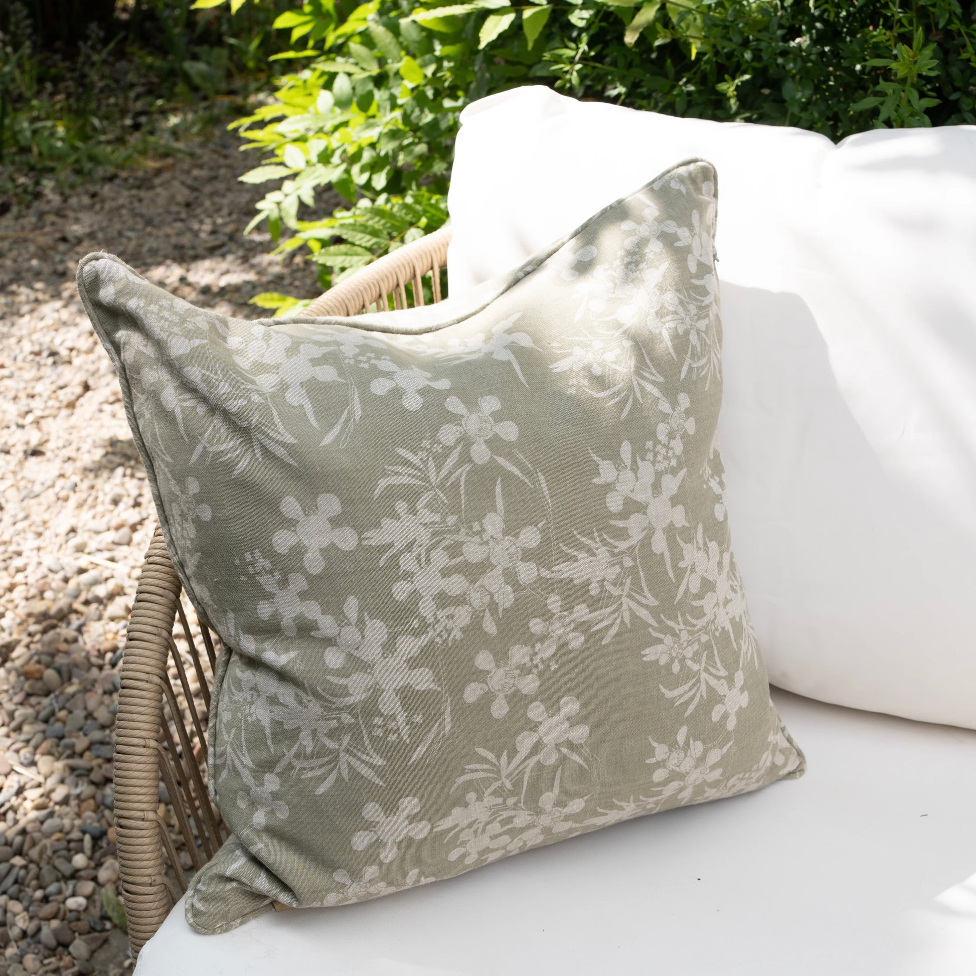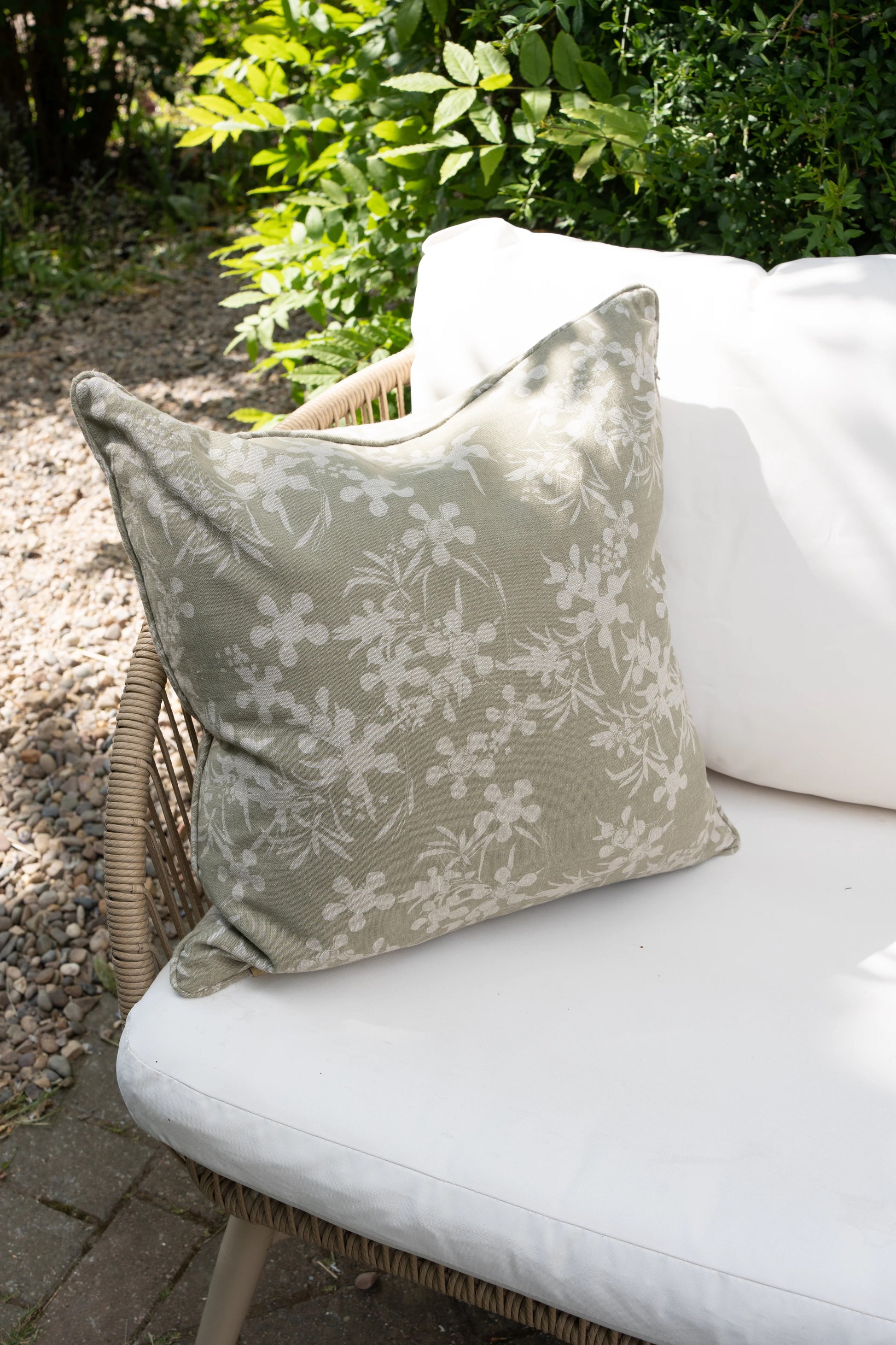 The Sage Cushion has a beautiful hand drawn floral design. It comes complete with a luxury feather insert.