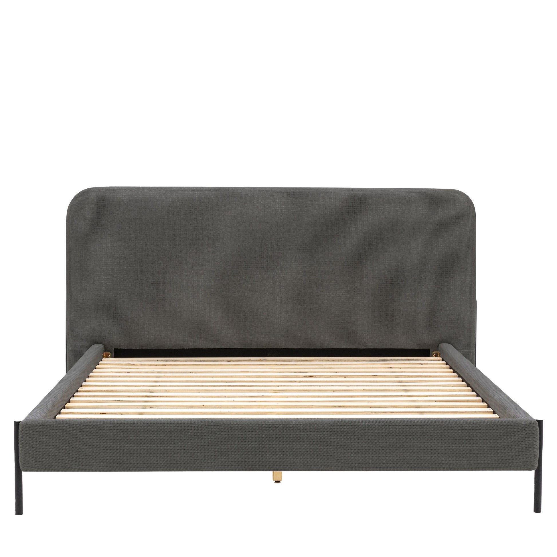 This king size bedstead's modern design and clean lines will suit a wide variety of interiors with ease. The sleek black metal legs complement the soft curves of the simple rounded headboard, creating an effortlessly cool look that will add a contemporary touch to your bedroom.