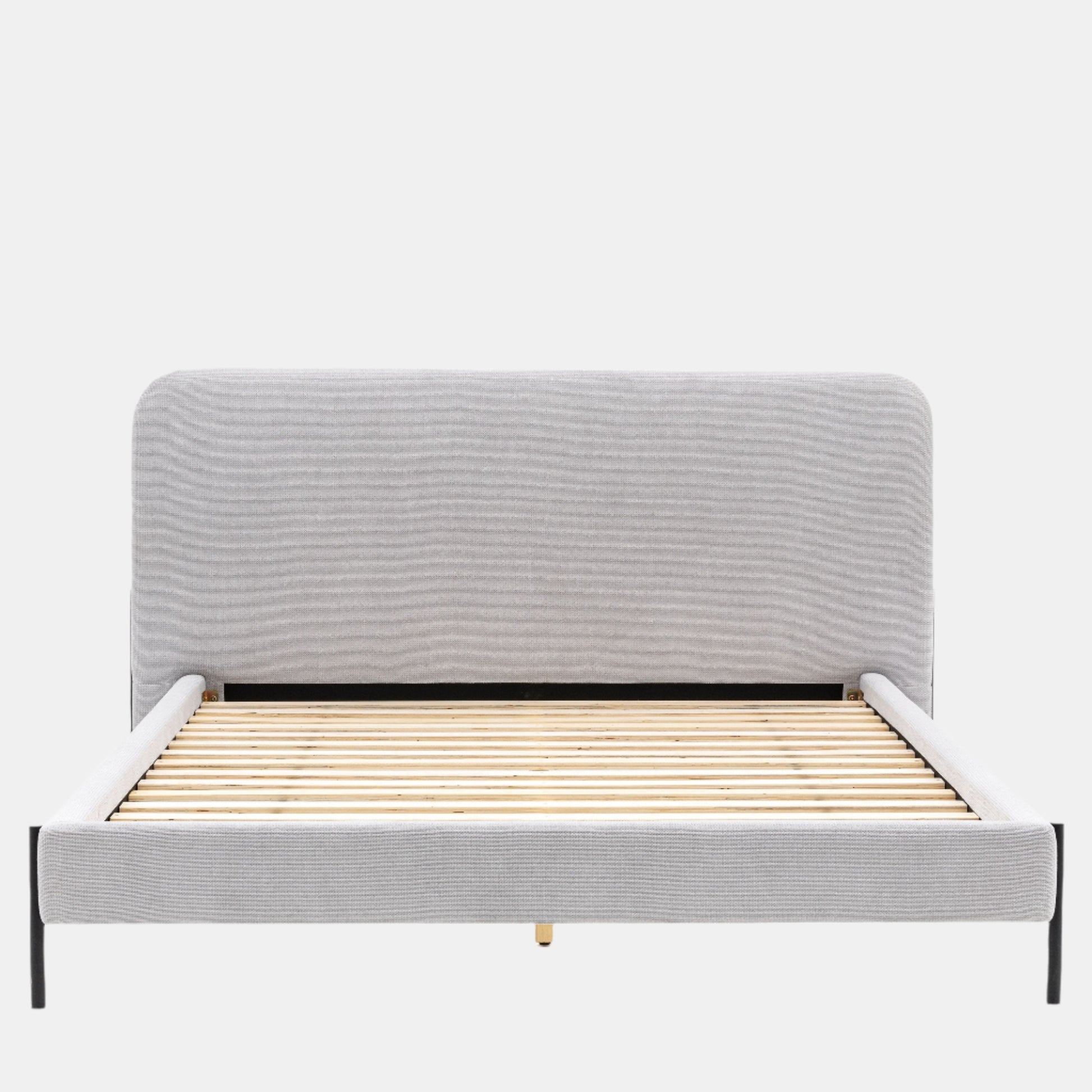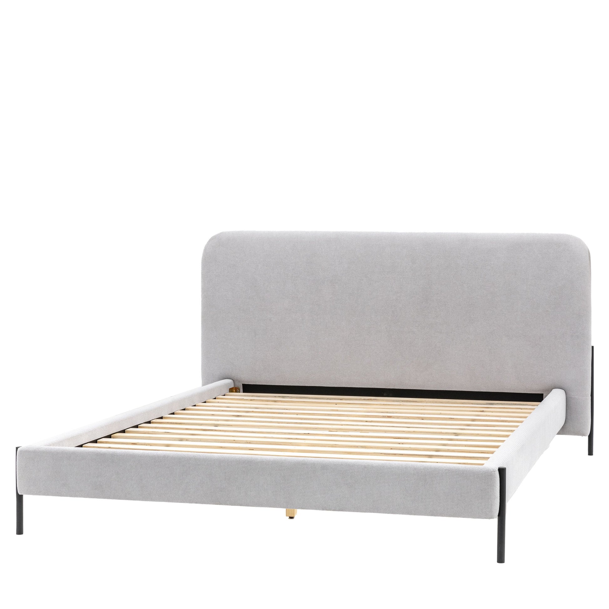 This king size bedstead's modern design and clean lines will suit a wide variety of interiors with ease. The sleek black metal legs complement the soft curves of the simple rounded headboard, creating an effortlessly cool look that will add a contemporary touch to your bedroom.