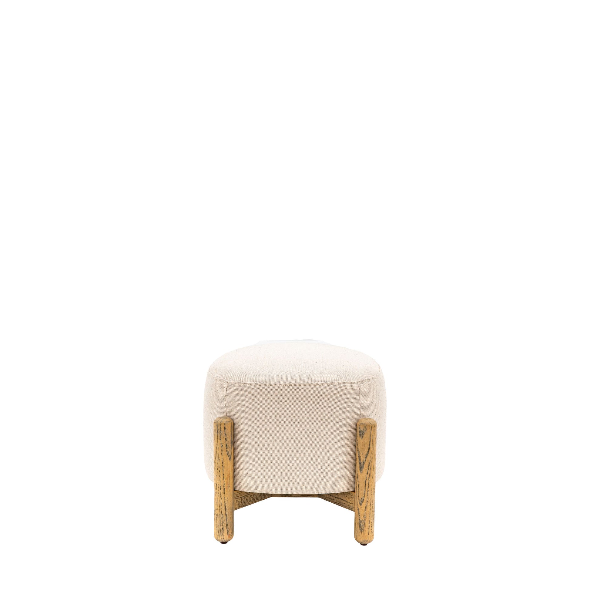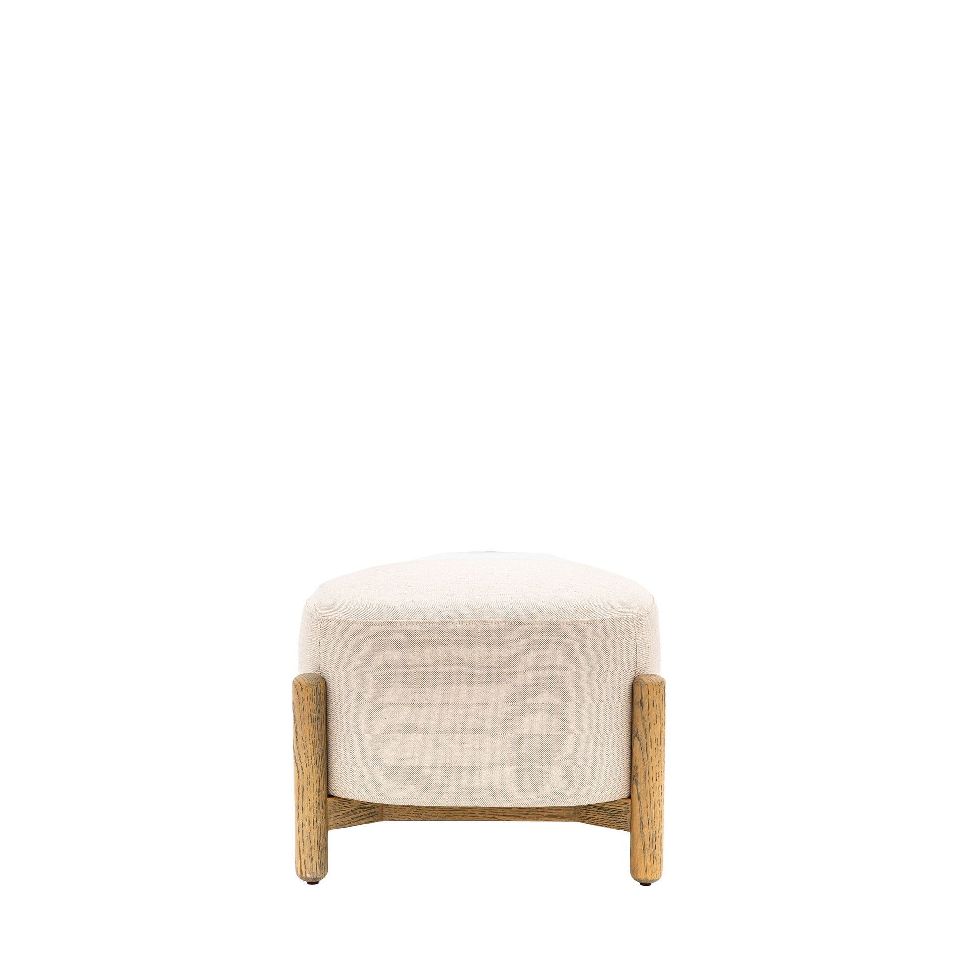 The eye-catching style of this lovely footstool features a beautifully designed wooden base which supports a deep cushion, upholstered in a lovely natural coloured fabric.