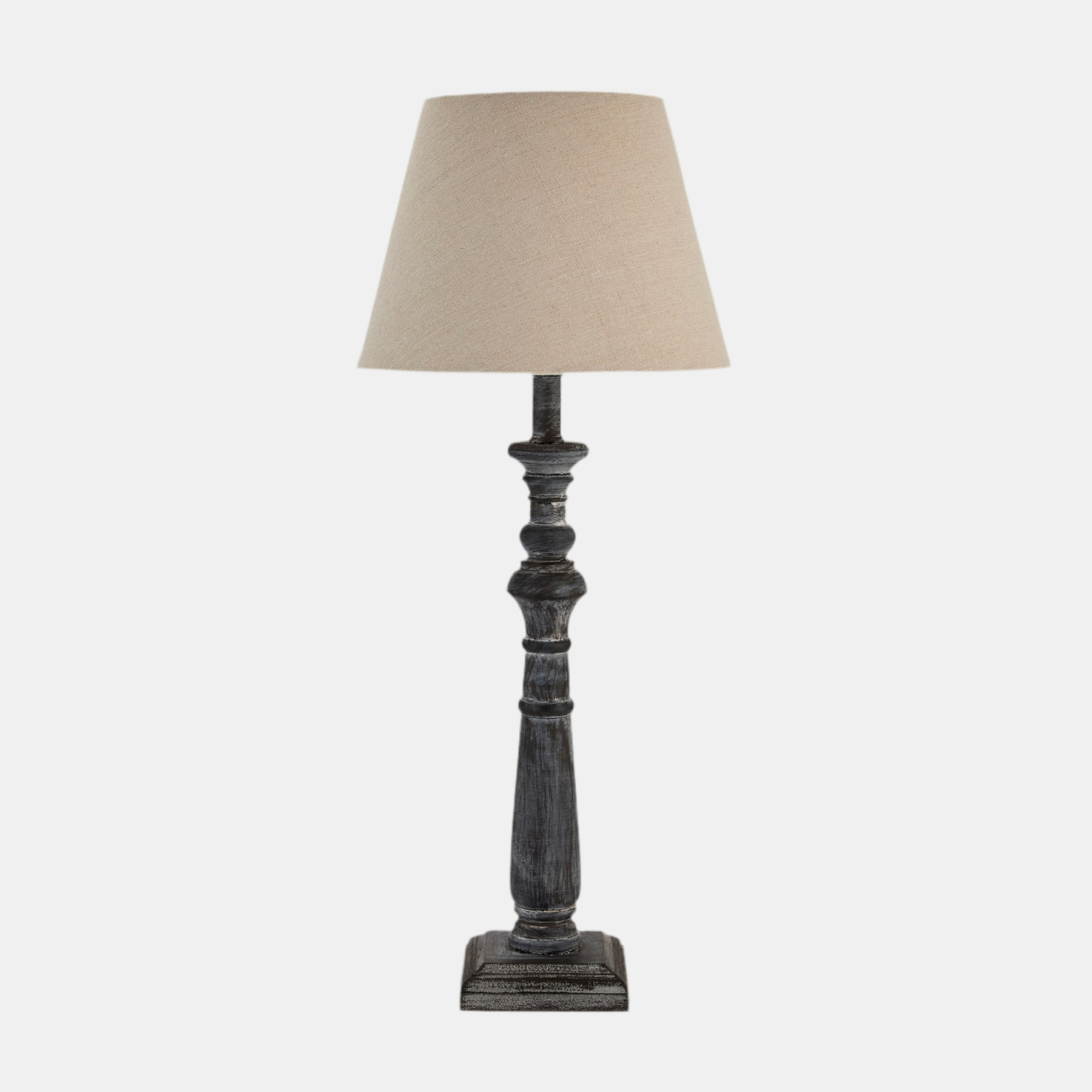 Our Windsor Column Table Lamp is an absolute beauty. Handcrafted and finished in a grey-washed wood, it provides a timeless and elegant look. It comes complete with the linen shade as shown.